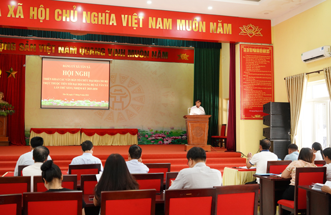Tại Hội nghị, đồng chí Trần Sơn Hải- Phó Bí thư Thường trực Đảng ủy xã đã triển khai các văn bản, kế hoạch chỉ đạo Đại hội các cấp nhiệm kỳ 2025- 2030; kế hoạch tổ chức Đại hội các Chi bộ trực thuộc nhiệm kỳ 2025- 2027, tiến tới Đại hội đại biểu Đảng bộ xã Tân Xã lần thứ XXVI, nhiệm kỳ 2025- 2030. Theo đó, thời gian tiến hành Đại hội Chi bộ trực thuộc Đảng bộ xã tiến hành từ tháng 2/2025, hoàn thành trước ngày 31/3/2025. Đại hội Đảng bộ xã hoàn thành trước ngày 30/6/2025.