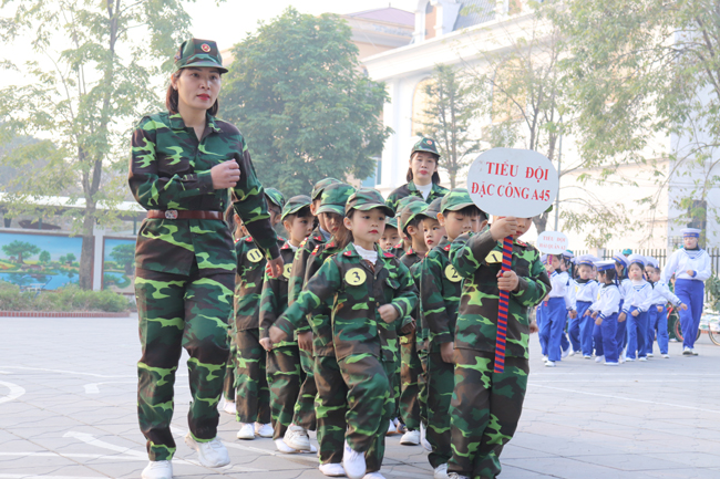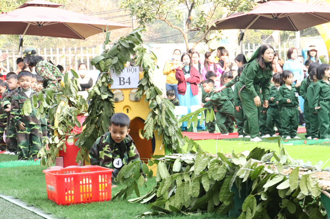 Trong đó phần chơi mà trẻ hào hứng nhất đó là “ném lựu đạn trúng đích và vận chuyển lương thực về kho”. Ở phần chơi này, các bé được trải nghiệm làm một chiến sĩ nhí khi được trườn dưới chướng ngại vật, được bò qua hầm…; Hoạt động như tái hiện lại một khung cảnh chiến đấu gian khổ, đầy hào hùng của lực lượng Quân đội Nhân dân Việt Nam anh hùng để đem lại nền hòa bình, độc lập, tự do cho quê hương, đất nước.