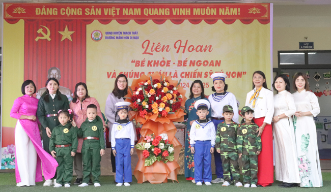 24/12/2024Chào mừng kỷ niệm 80 năm ngày thành lập Quân đội Nhân dân Việt Nam (22/12/1944- 22/12/2024), 35 năm Ngày hội Quốc phòng toàn dân; Sáng ngày 22/12, trường Mầm non Dị Nậu tổ chức Liên hoan “Bé khỏe- Bé ngoan và chúng cháu là chiến sĩ tý hon”. Lãnh đạo phòng Giáo dục & Đào tạo huyện; Ban giám hiệu trường Mầm non Văn Đức- huyện Gia Lâm (đơn vị kết nghĩa); các đồng chí lãnh đạo xã; Ban đại diện Hội phụ huynh học sinh dự, động viên Liên hoan.
