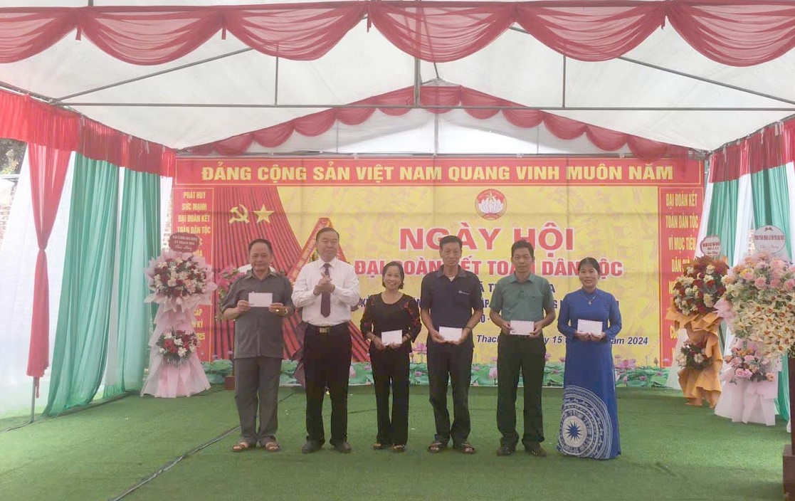 Nhân dịp này, Huyện uỷ - HĐND – UBND - UB MTTQ Huyện trao tặng hỗ trợ 5 triệu đồng cho Ngày hội Thôn 3 xã Thạch Hoà. Lãnh đạo Huyện, lãnh đạo xã Thạch Hòa, lãnh đạo thôn 3 tặng 34 suất quà cho các gia đình tiêu biểu trong các cuộc vận động và phong tràothi đua năm 2024; gia đình có hoàn cảnh khó khăn trên địa bàn thôn 3 xã Thạch Hòa./.