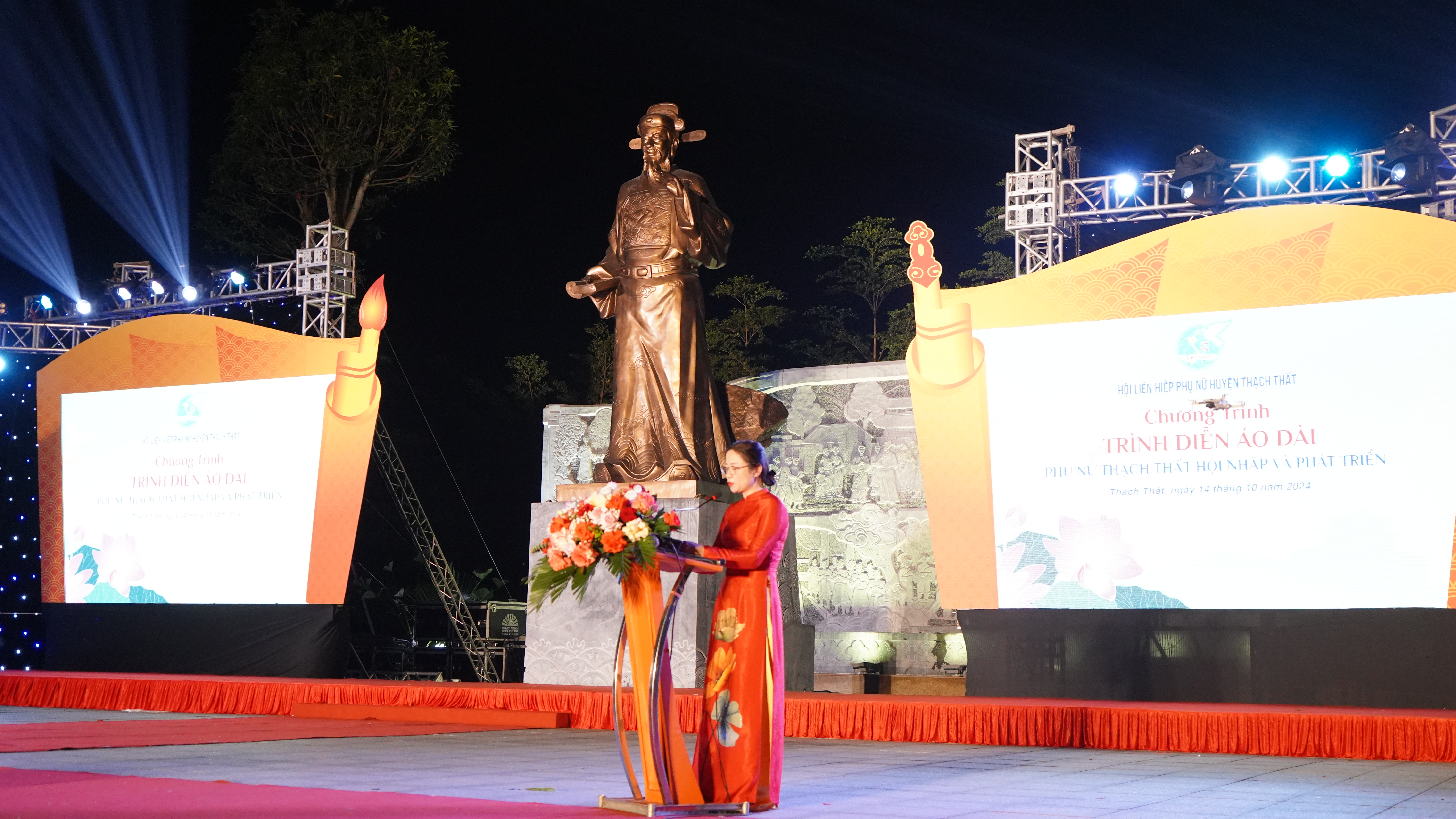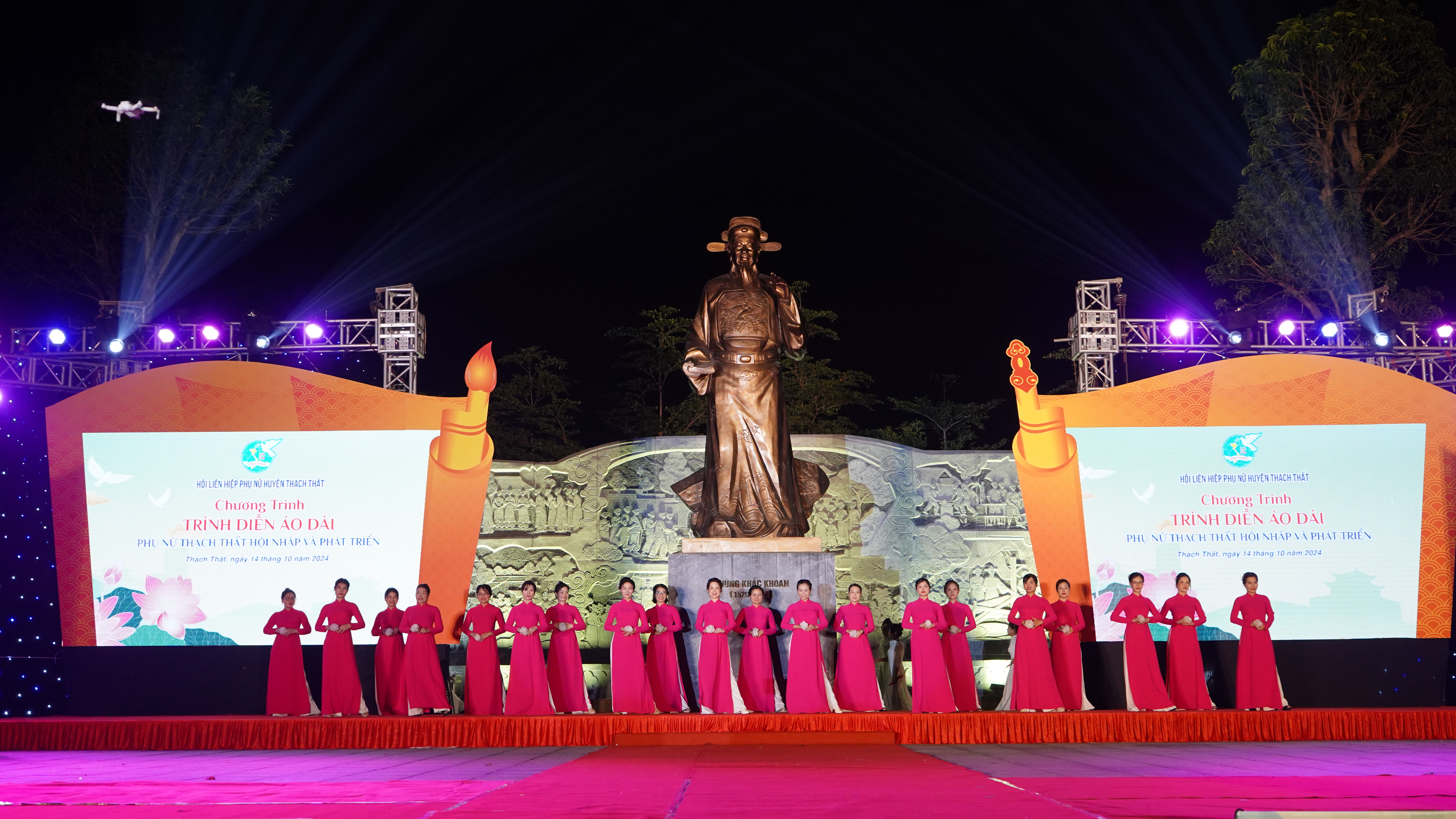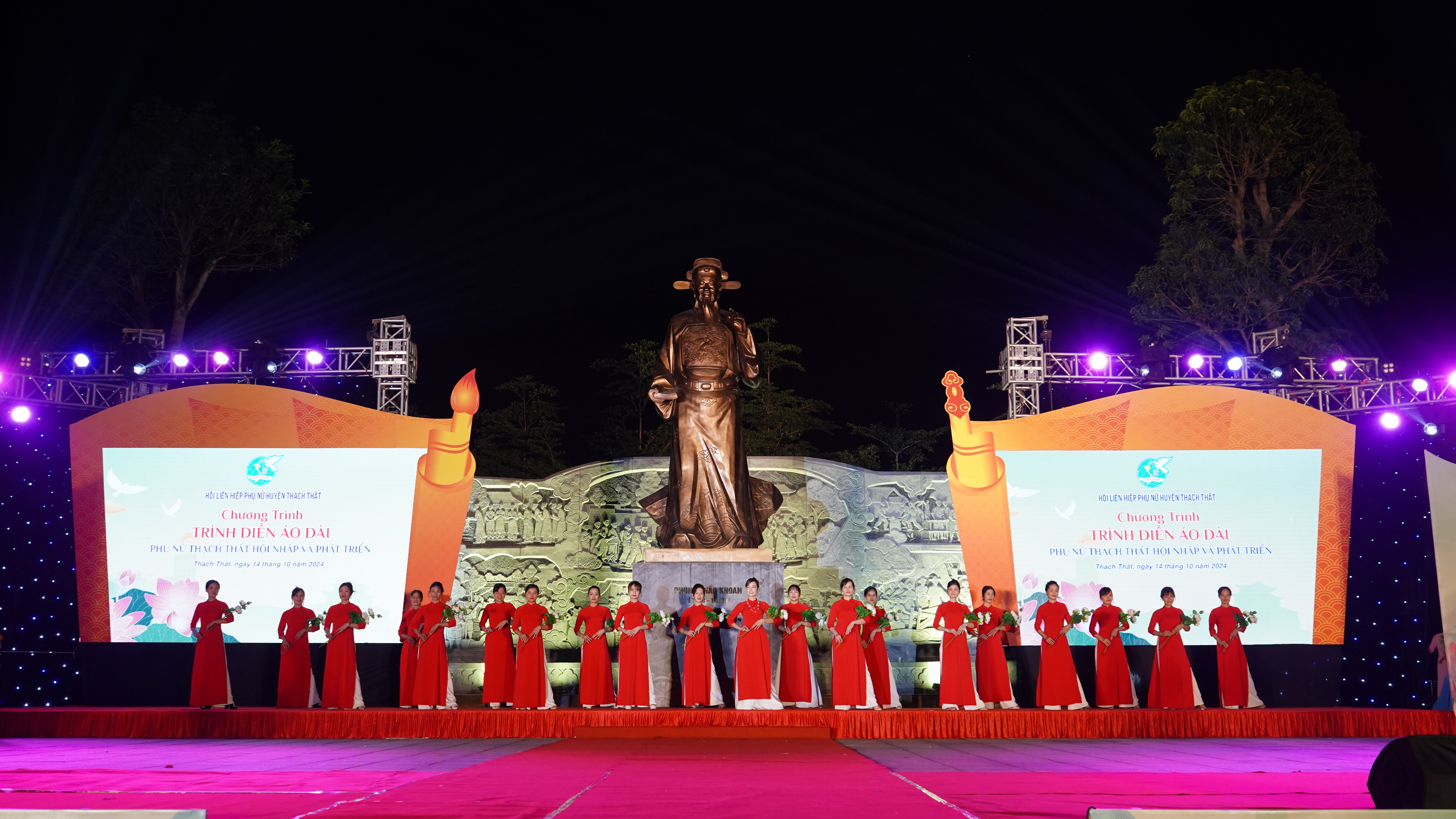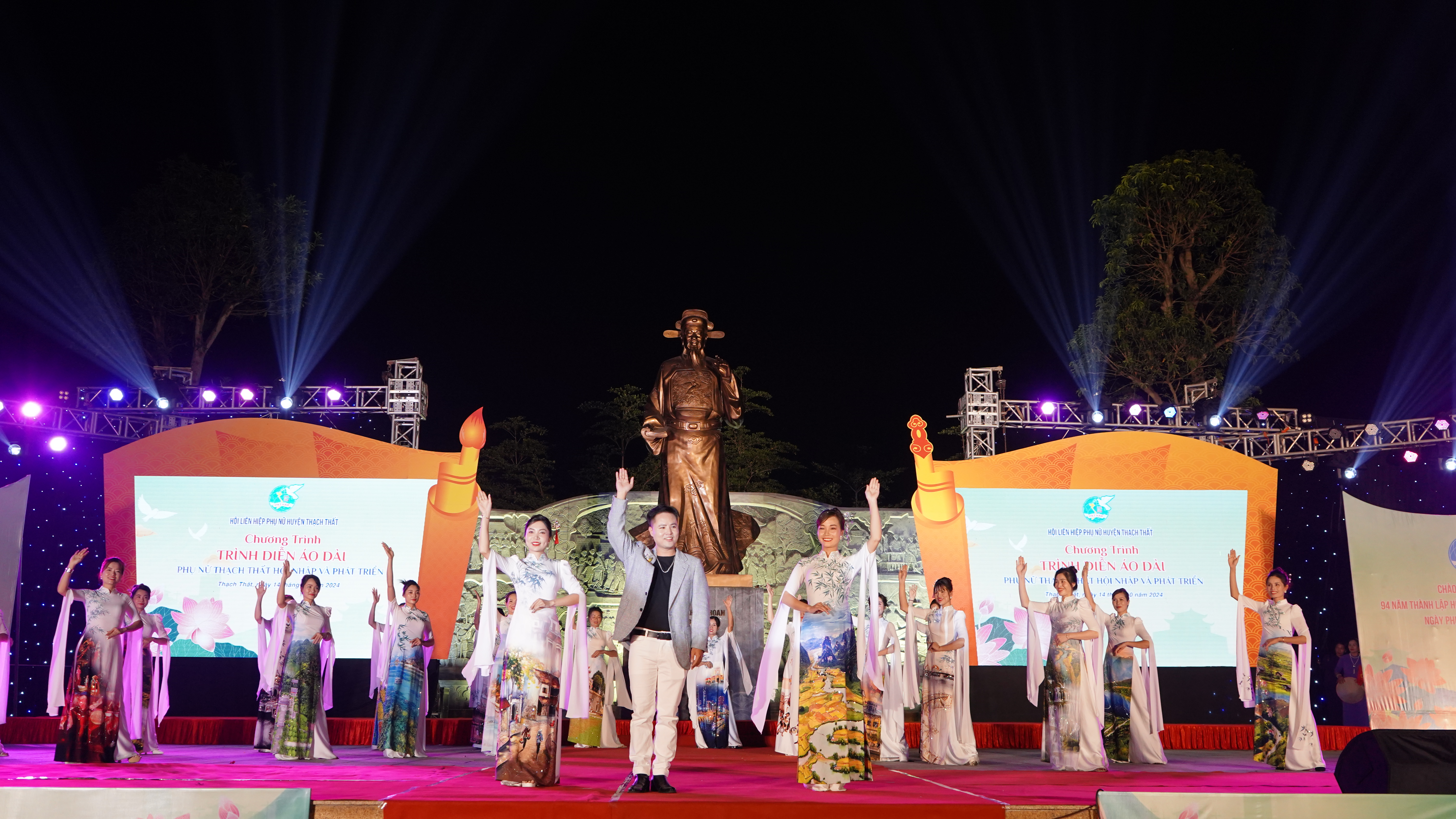 15/10/2024Nằm trong chuỗi các hoạt động kỷ niệm 70 năm ngày Giải phóng Thủ đô Hà Nội (10/10/1954 – 10/10/2024) và 94 năm ngày thành lập Hội LHPN Việt Nam (20/10/1930 – 20/10/2024) và hưởng ứng Tháng áo dài do Hội LHPN Thành phố phát động, tối ngày 14/10, tại vườn hoa Phùng Khắc Khoan, Hội LHPN huyện Thạch Thất tổ chức chương trình trình diễn áo dài “Phụ nữ Thạch Thất: Hội nhập và Phát triển” năm 2024. Đồng chí Lê Kim Anh – TUV – Chủ tịch Hội LHPN Thành phố Hà Nội, đồng chí Lê Minh Đức - TUV - Bí thư Huyện uỷ, đồng chí Nguyễn Mạnh Hồng – Phó Bí thư Huyện uỷ - Chủ tịch UBND huyện; đồng chí Nguyễn Minh Hồng – Phó Bí thư thường trực Huyện uỷ - Chủ tịch HĐND huyện; các đồng chí trong Ban thường vụ Huyện uỷ, thường trực HĐND, Lãnh đạo UBND, Ủy ban MTTQ, trưởng các tổ chức chính trị - xã hội huyện, các phòng, ban, ngành huyện; các đồng chí nguyên lãnh đạo Hội LHPN huyện qua các thời kỳ; lãnh đạo các xã, thị trấn dự chương trình.