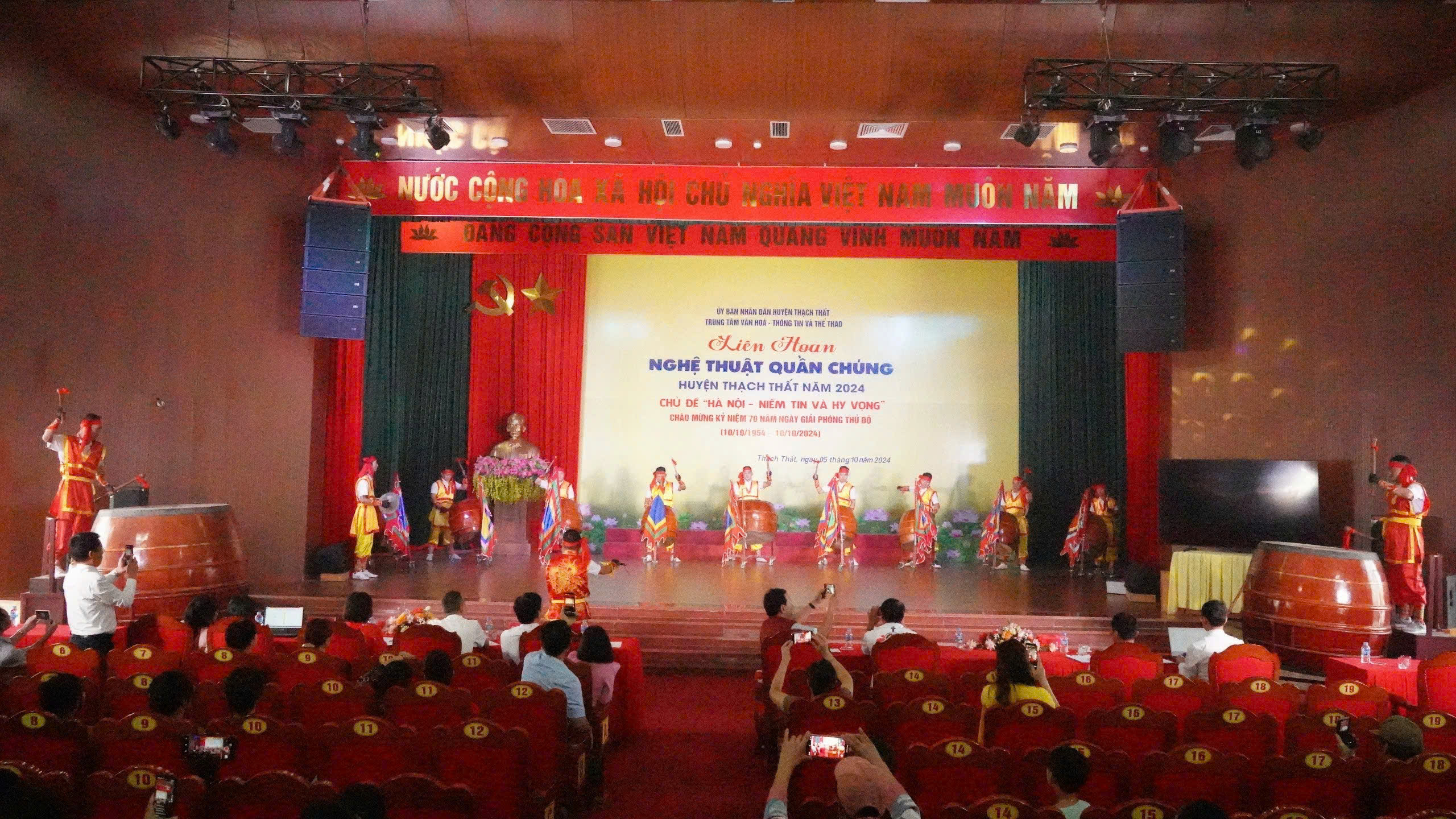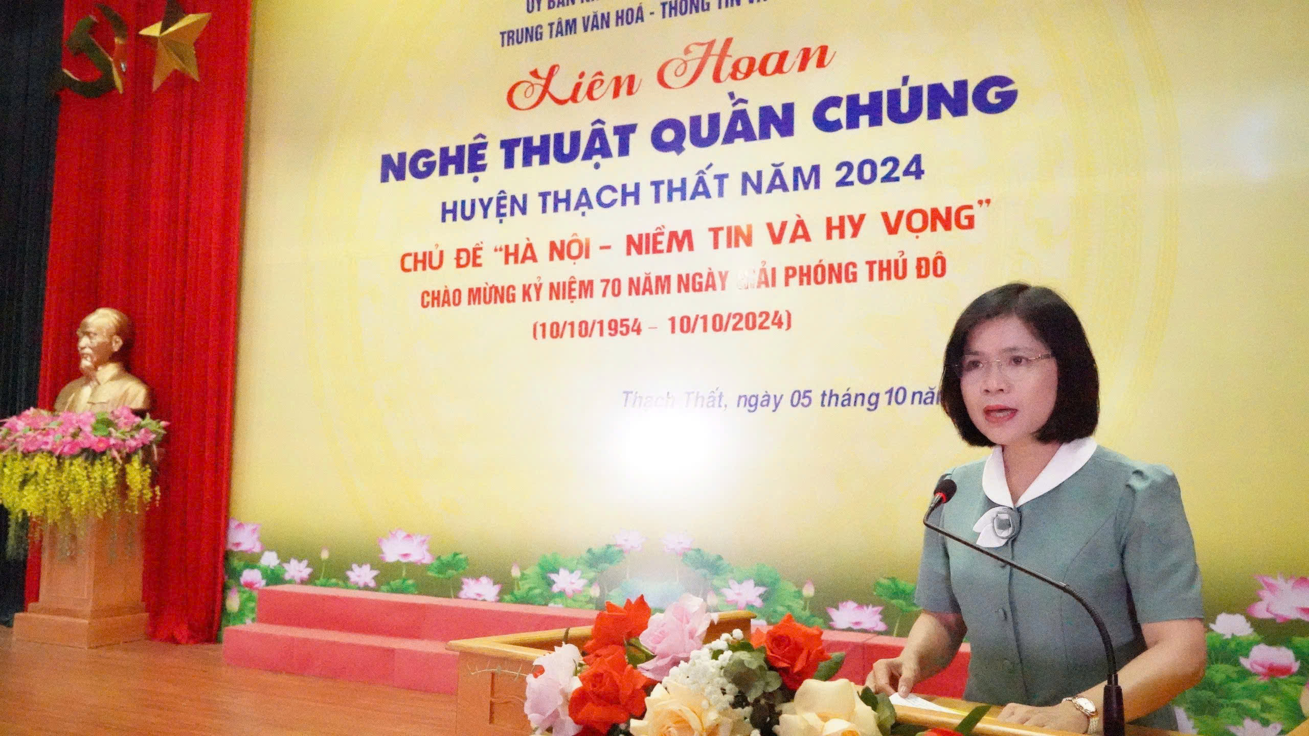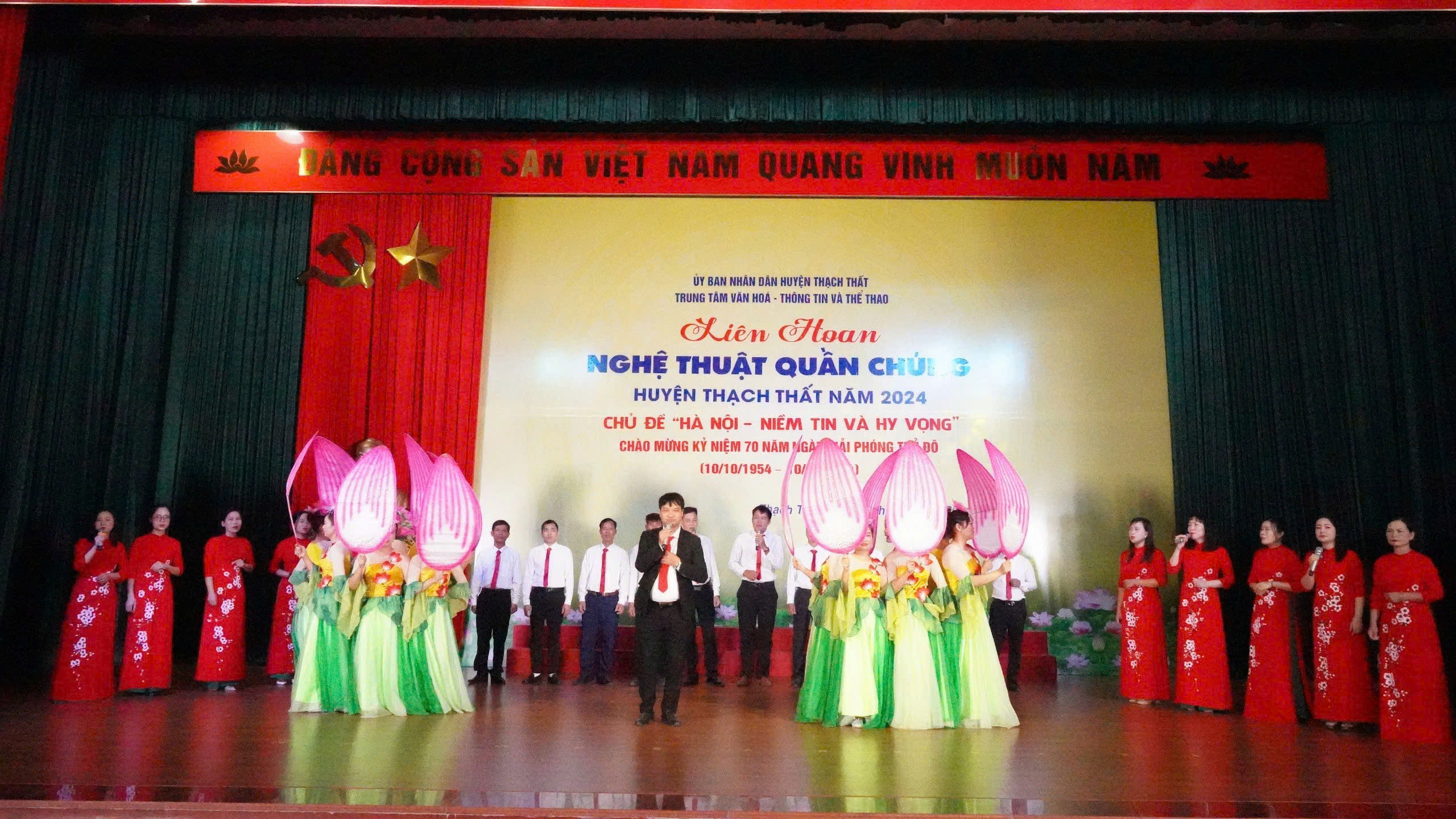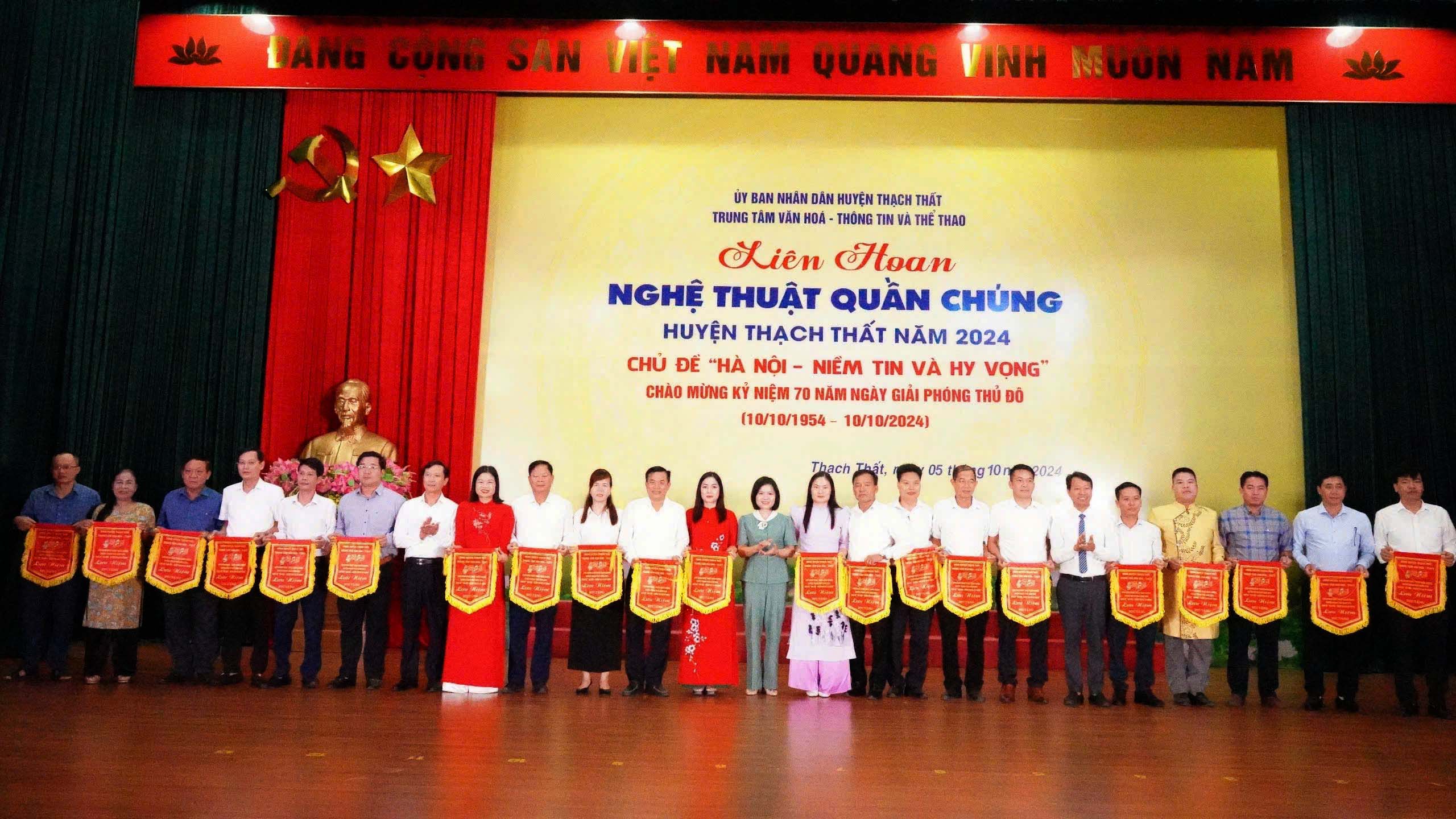 05/10/2024Thiết thực chào mừng kỷ niệm 70 năm Ngày giải phóng Thủ đô (10/10/1954- 10/10/2024), ngày 5/10, tại Hội trường Trung tâm Văn hóa- Thông tin và Thể thao huyện, UBND huyện tổ chức Liên hoan nghệ thuật quần chúng huyện Thạch Thất năm 2024, với chủ đề “Hà Nội- Niềm tin và hy vọng”.