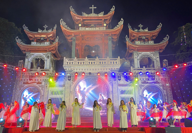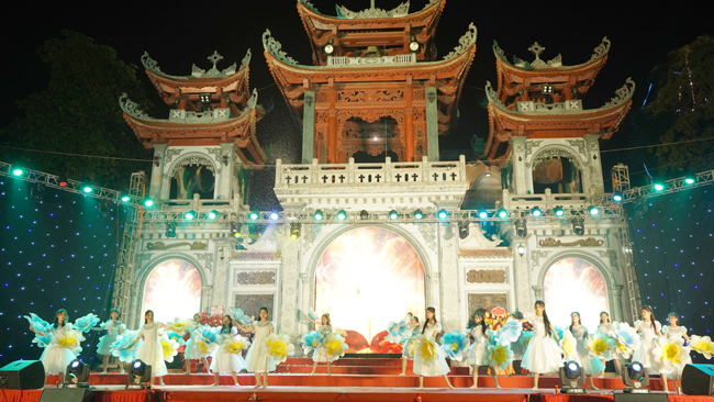 Đúng 19h, sân khấu Nhà thờ Giáo xứ Cần Kiệm rực sáng, sôi động bởi những tiết mục ca múa nhạc do các em thanh, thiếu nhi và nhân dân trong giáo xứ biểu diễn. Với sự chuẩn bị chu đáo, Chương trình Hoan ca đã thu hút đông đảo bà con giáo dân trong giáo xứ, cùng người dân trong và ngoài xã Cần Kiệm đến tham dự, tạo nên không khí vui tươi, đầm ấm.
