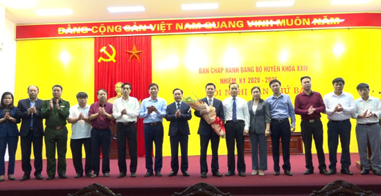 Các đ/c trong Ban Thường vụ Huyện ủy, Thường trực HĐND, Lãnh đạo UBND huyện tặng hoa chúc mừng đ/c Bí thư Huyện ủy tái đắc cử Ủy viên Ban Chấp hành Đảng bộ thành phố Hà Nội khóa XVII, nhiệm kỳ 2020- 2025.