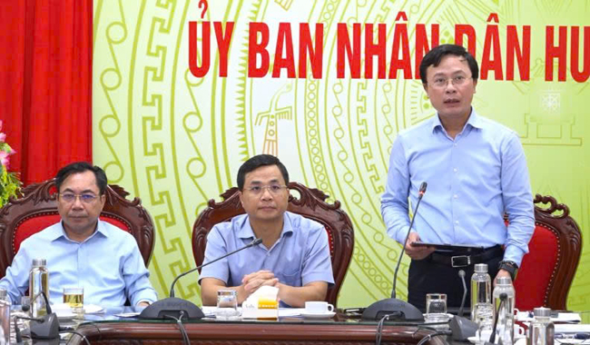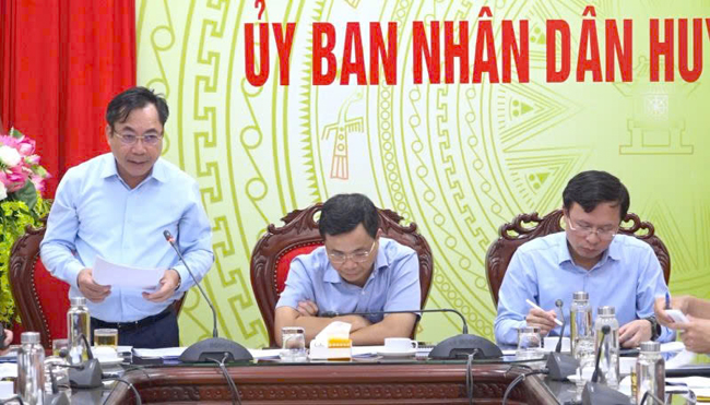 Đồng chí Lê Minh Đức- Thành ủy viên- Bí thư Huyện ủy, đồng chí Nguyễn Mạnh Hồng- Phó Bí thư Huyện ủy- Chủ tịch UBND huyện, đồng chí Nguyễn Minh Hồng- Phó Bí thư Thường trực Huyện ủy- Chủ tịch HĐND huyện chủ trì hội nghị.