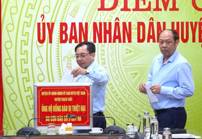 Đồng chí Lê Minh Đức- Thành ủy viên- Bí thư Huyện ủy yêu cầu các đồng chí UVBTV Huyện ủy, Huyện ủy viên trực tiếp xuống xã, thị trấn chỉ đạo kịp thời các sự cố. Các địa phương tập trung ứng trực 24/24h, theo dõi diễn biến thời tiết để ứng phó kịp thời, linh hoạt các tình huống, sự cố. Rà soát lại các hộ dân bị ngập úng, kiên quyết yêu cầu người dân di dời đến nơi an toàn. Đối với các xã Tiến Xuân, Yên Trung, Yên Bình, Cần Kiệm, Thạch Xá, Kim Quan kiểm tra, cảnh báo người dân đề phòng lũ ống, lũ quét, sạt lở đất, chủ động trong mọi tình huống.