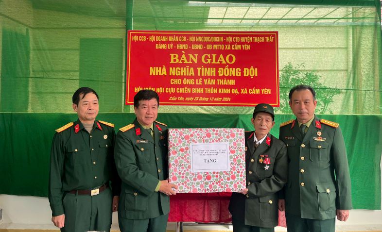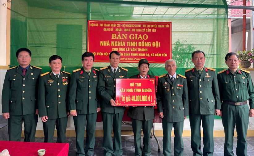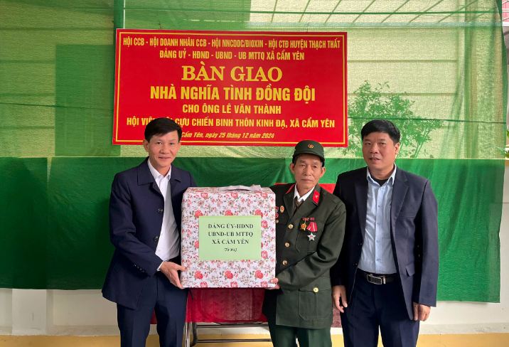 26/12/2024Sáng ngày 25/12/2024, Hội Cựu chiến binh huyện Thạch Thất phối hợp với Chi hội doanh nhân Cựu chiến binh, Hội nạn nhân chất độc da cam/Dioxin, Hội Chữ thập đỏ huyện và Đảng ủy- HĐND- UBND- Ủy ban MTTQ xã Cẩm Yên tổ chức bàn giao nhà nghĩa tình đồng đội cho hội viên Cựu chiến binh Lê Văn Thành- thôn Kinh Đạ, xã Cẩm Yên.