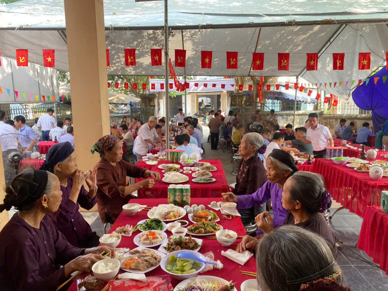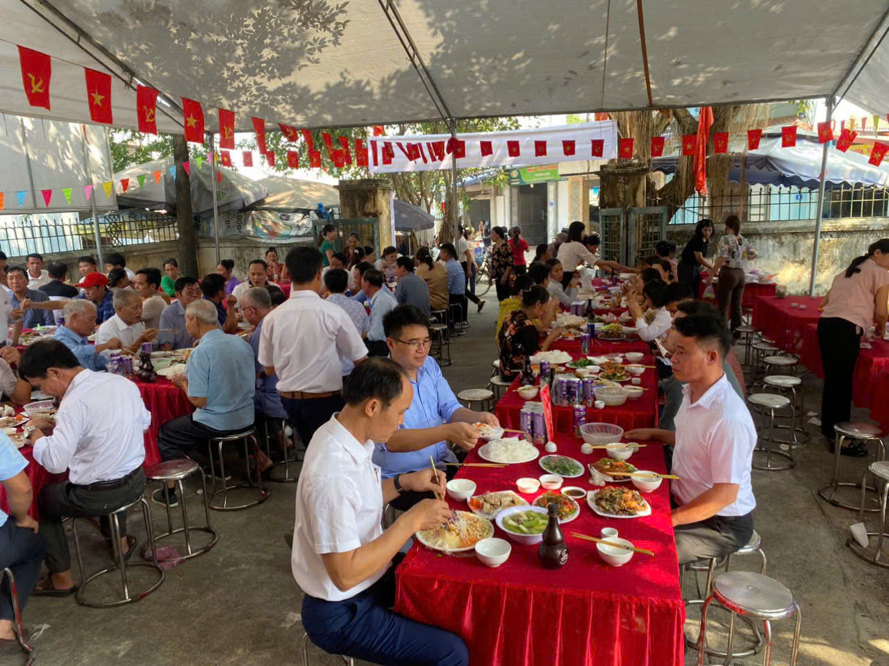 Cán bộ, nhân dân thôn Cẩm Bào chung vui bữa cơm đoàn kết