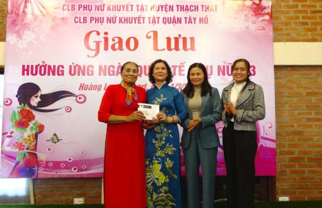Tại chương trình giao lưu, bà Nguyễn Thị Sen- Chủ tịch Hội Người khuyết tật, Chủ nhiệm Câu lạc bộ Phụ nữ khuyết tật huyện Thạch Thất và bà Nguyễn Thị Lợi- Phó Chủ tịch Hội Người khuyết tật quận Tây Hồ đã ôn lại truyền thống ngày Quốc tế Phụ nữ và cuộc khởi nghĩa của Hai Bà Trưng.