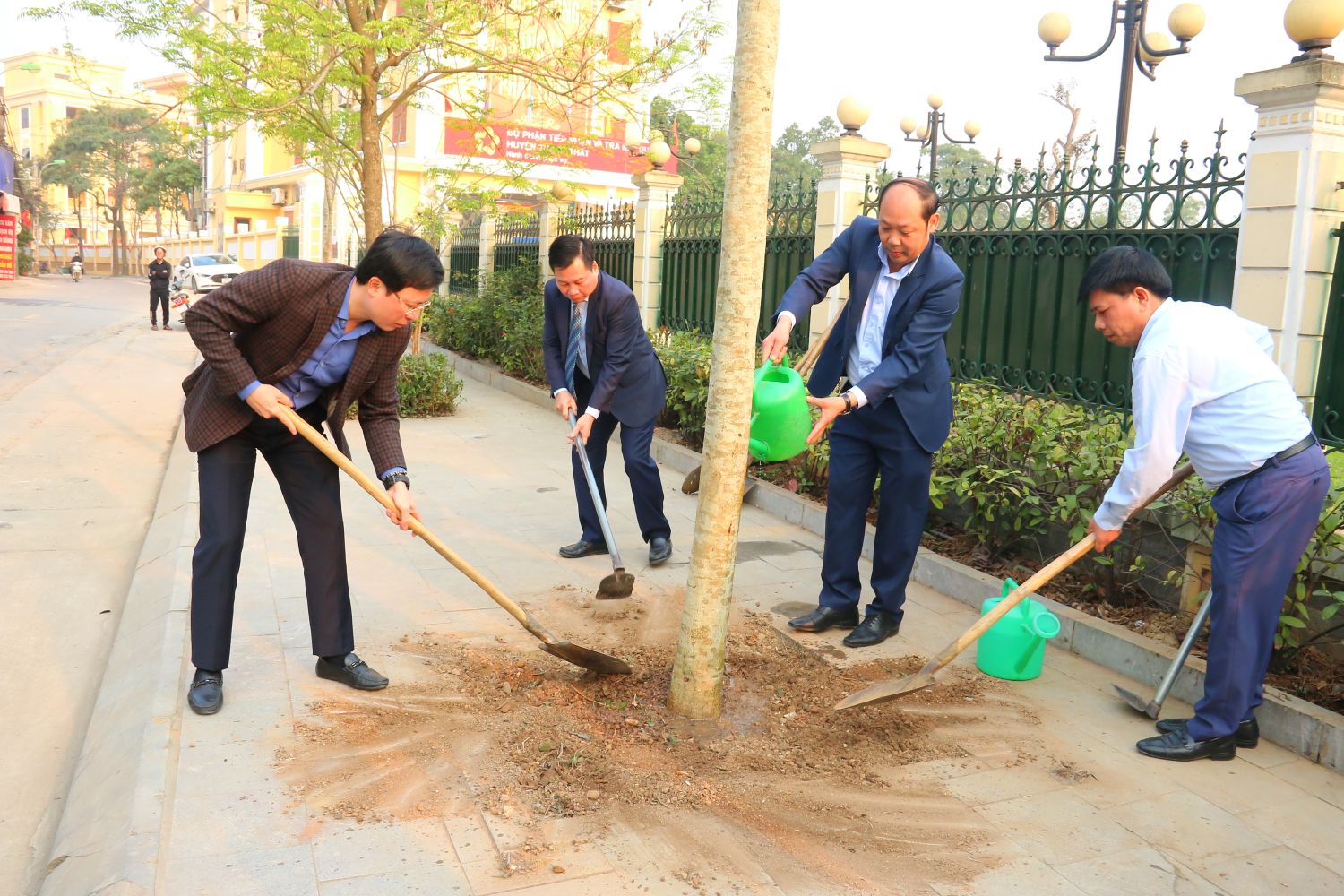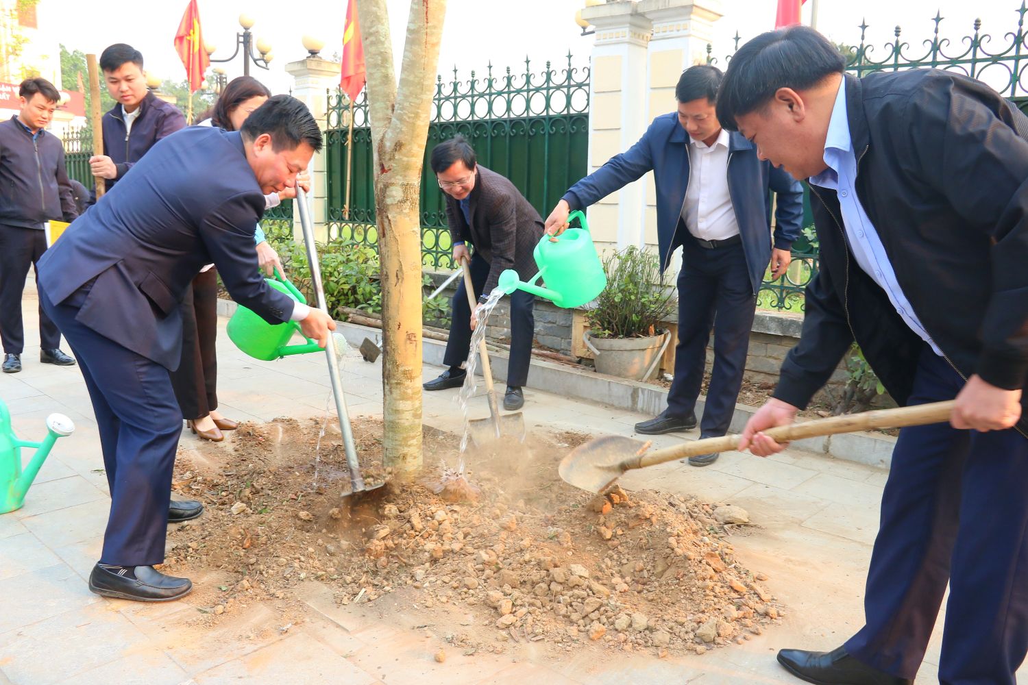 Các đại biểu tham gia trồng cây khu vực trung tâm huyện