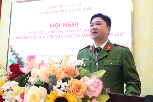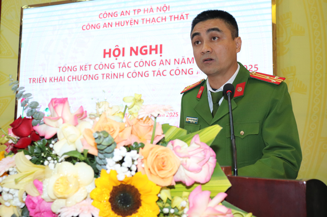 Phát biểu tại Hội nghị, Đại tá Dương Đức Hải- Phó Giám đốc Công an Tp Hà Nội; đồng chí Lê Minh Đức- TUV- Bí thư Huyện ủy Thạch Thất ghi nhận, biểu dương, đánh giá cao những kết quả mà Công an huyện Thạch Thất đạt được trong năm 2024.