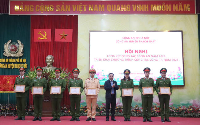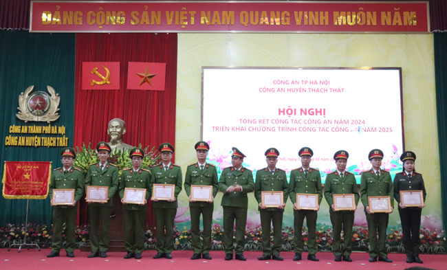 Trong phong trào thi đua Vì an ninh Tổ quốc, năm 2024 là năm ghi đậm dấu ấn về kết quả toàn diện trong công tác bảo đảm an ninh chính trị, trật tự an toàn xã hội. Lực lượng Công an huyện Thạch Thất vinh dự được Bộ Công an tặng Cờ thi đua xuất sắc; có 72 tập thể, 149 cá nhân được các cấp khen thưởng.