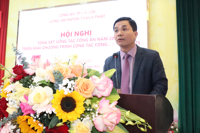 Chỉ đạo nhiệm vụ trọng tâm năm 2025, đồng chí Bí thư Huyện ủy Thạch Thất đề nghị Công an huyện chủ động nắm tình hình, tham mưu cho Huyện ủy, UBND Huyện triển khai thực hiện có hiệu quả các Chỉ thị, Nghị quyết của Trung ương Đảng, Chính phủ, Thành phố trên lĩnh vực đảm bảo an ninh trật tự.