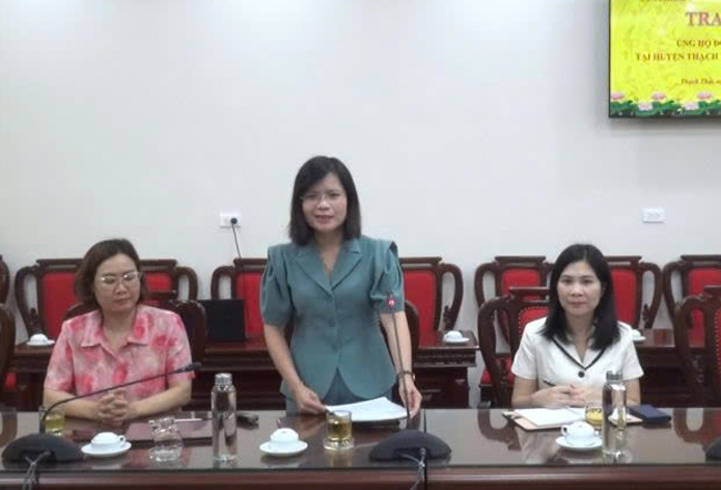 Đồng chí Lại Bá Hà- Phó Tổng Biên tập Báo Hà Nội mới, đồng chí Đỗ Thanh Tuấn- Giám đốc Kế hoạch, Công ty Cổ phần Sữa Việt Nam Vinamilk cùng Đoàn đã tặng huyện Thạch Thất 369 thùng với trên 18 nghìn sản phẩm sữa, nước uống, 40 thùng mì tôm và 500 phần quà gửi đến học sinh, đối tượng khó khăn bị ảnh hưởng do cơn bão số 3; lực lượng trực tiếp tham gia phòng chống thiên tai ở các xã, thị trấn.