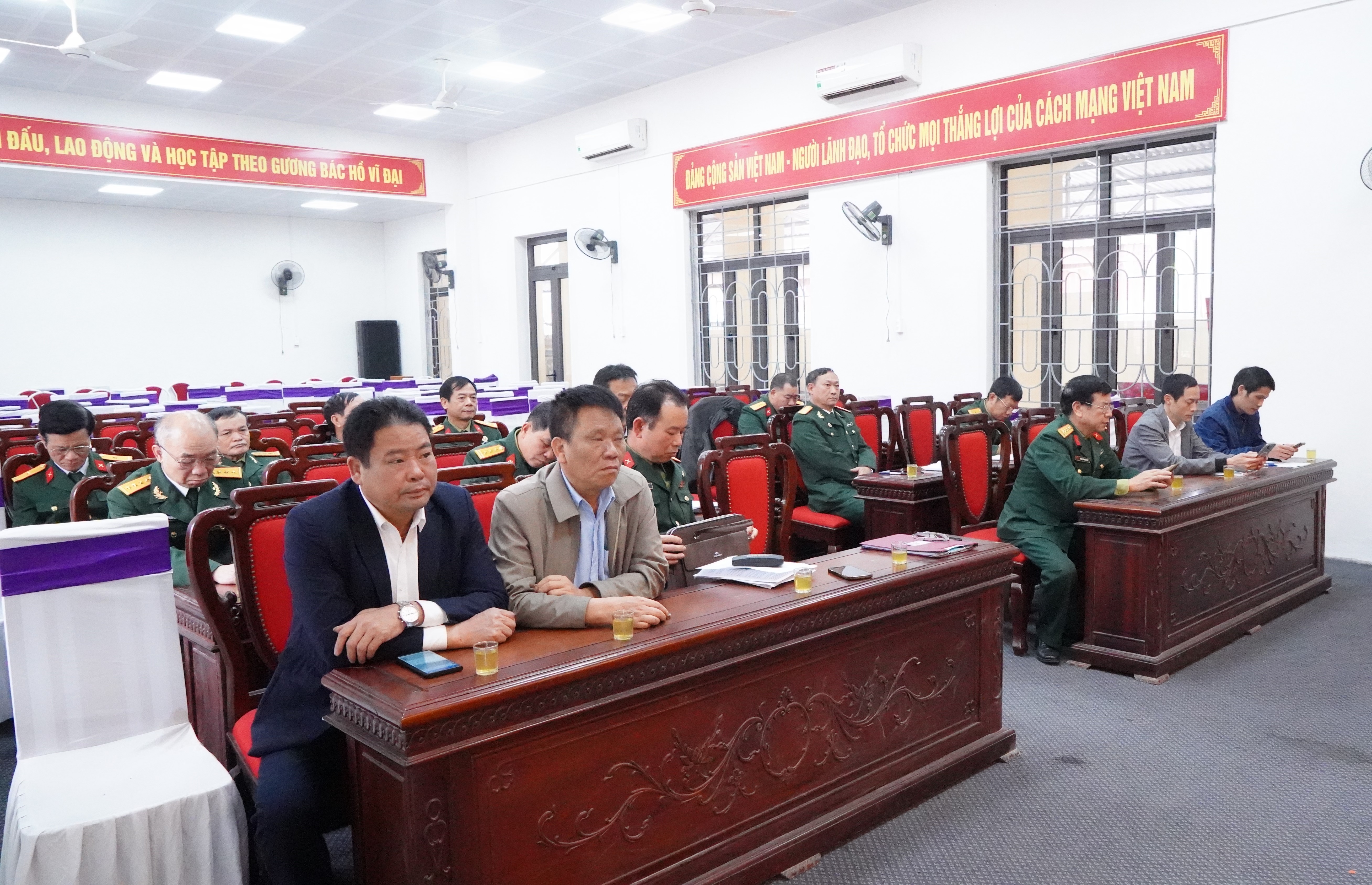 Đồng chí Nguyễn Ngọc Tố - Chủ tịch Hội CCB huyện, đồng chí Khúc Thụy Dân - Phó chủ tịch Hội CCB huyện, lãnh đạo Thị trấn Liên Quan; chủ tịch, phó chủ tịch hội CCB các xã, thị trấn trong Cụm thi đua số 1, dự hội nghị.