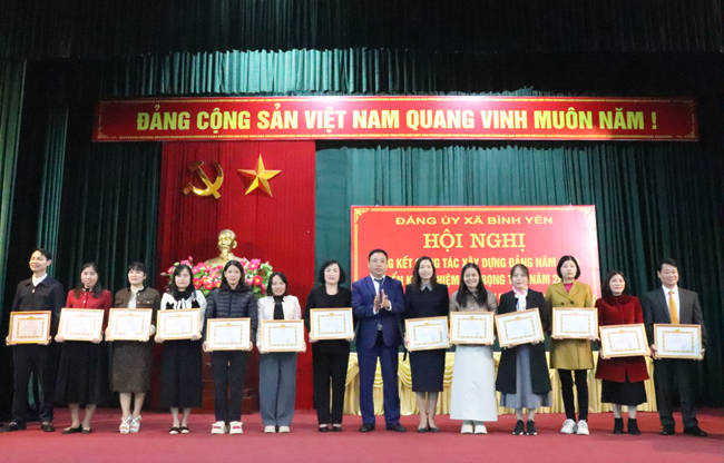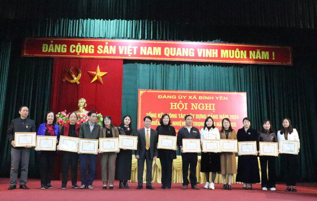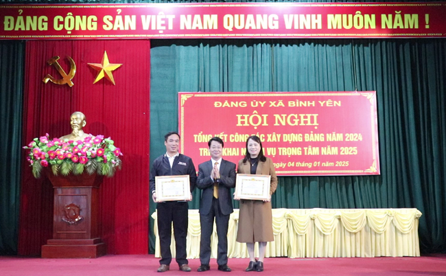 Tại Hội nghị, đồng chí Nguyễn Hữu Lương- HUV- Bí thư Đảng ủy đã trao Kỷ niệm chương của Ủy ban Kiểm tra Trung ương cho 3 đồng chí; Ban chấp hành Đảng bộ xã tuyên dương, khen thưởng 10 tổ chức Đảng đạt danh hiệu Chi bộ 4 tốt; khen thưởng 02 tổ chức Đảng, 84 đảng viên hoàn thành xuất sắc nhiệm vụ năm 2024. đồng thời tuyên dương, khen thưởng 11 tập thể và 15 cá nhân có thành tích xuất sắc trong tham gia các Cuộc thi do Huyện phát động năm 2024./.