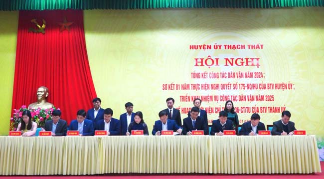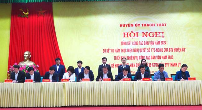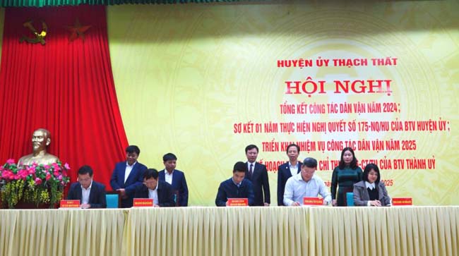 Tại hội nghị, đại diện các cơ quan chuyên môn của huyện, Đảng ủy các xã, thị trấn đã ký giao ước thi đua thực hiện các nội dung Chỉ thị số 36 ngày 28/11/2024 của Ban Thường vụ Thành ủy, Kế hoạch số 239 ngày 13/12/2024 của Ban Thường vụ Huyện ủy về “Đẩy mạnh công tác dân vận trong công tác quy hoạch; công tác bồi thường, hỗ trợ, tái định cư khi Nhà nước thu hồi đất” trên địa bàn huyện./.