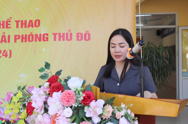 Đồng chí Nguyễn Thị Minh Phương- Đảng uỷ viên- Phó chủ tịch UBND xã Đồng Trúc phát biểu khai mạc