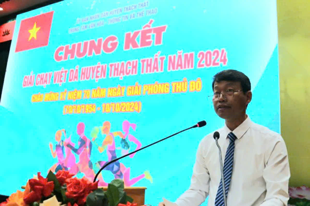 Phát biểu khai mạc, đồng chí Đặng Văn Võ- Huyện ủy viên- Giám đốc Trung tâm Văn hóa- Thông tin và Thể thao- Trưởng Ban tổ chức giải chạy việt dã huyện Thạch Thất cho biết: Hưởng ứng phong trào chạy “Vì hòa bình”, kiểm tra tiêu chuẩn chạy phổ thông và giải việt dã cơ sở năm 2024 do thành phố phát động, UBND huyện đã xây dựng kế hoạch, triển khai đến các đơn vị, đối tượng trên địa bàn huyện. Đến nay, toàn huyện có 55 đơn vị tổ chức thành công kiểm tra tiêu chuẩn chạy phổ thông và giải việt dã cơ sở, thu hút 12.318 người tham gia, kết quả 95,5% số người tham gia đạt tiêu chuẩn kiểm tra chạy phổ thông. Số đơn vị, số người tham gia đều đạt, vượt chỉ tiêu giao. 100% các đơn vị tổ chức đảm bảo đúng quy trình, tạo nên không khí vui tươi, lành mạnh, thực sự trở thành ngày hội lớn về phong trào thể dục thể thao trên địa bàn huyện.