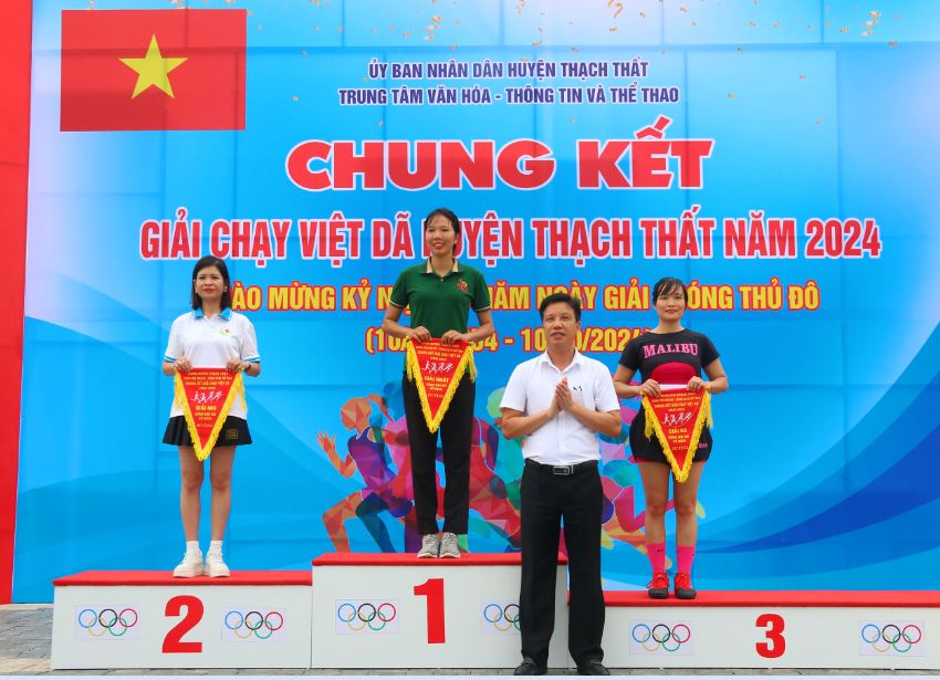 Sau một buổi sáng tranh tài sôi nổi, hào hứng, với tinh thần thi đấu thể thao trung thực, đoàn kết, Chung kết giải chạy việt dã huyện Thạch Thất năm 2024 đã thành công tốt đẹp. Ban tổ chức đã trao 4 giải Nhất, 4 giải Nhì, 4 giải Ba, 28 giải khuyến khích cho các vận động viên đạt thành tích cao, trong đó 4 giải Nhất được trao cho vận động viên Đinh Thị Trang- THCS Yên Bình; VĐV Nguyễn Việt Anh- THCS Yên Bình; VĐV Khương Thị Vân Trang- xã Thạch Xá và VĐV Đỗ An- xã Phùng Xá.