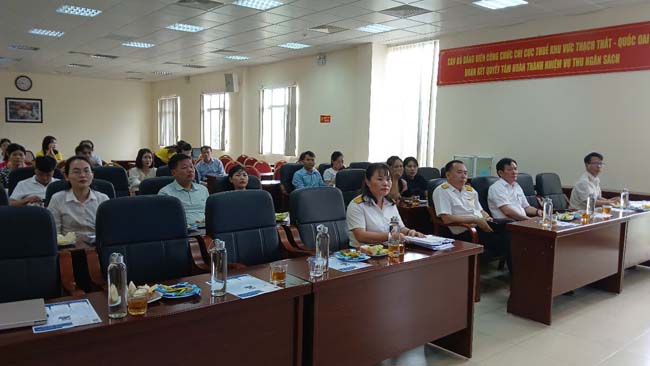 Công chức Tổ nghiệp vụ Đội Thuế truyền đạt tại Hội nghị