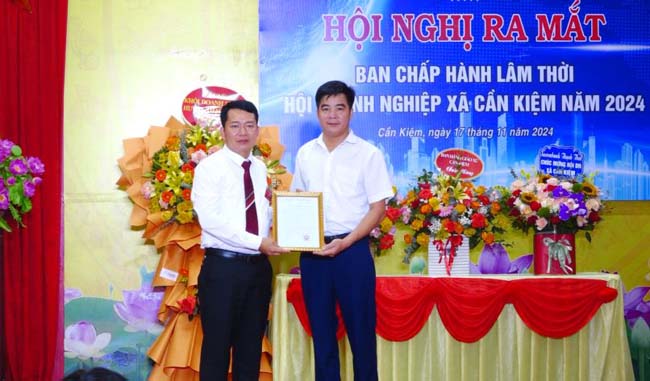 Trao Quyết định của UBND xã về thành lập BCH lâm thời Hội Doanh nghiệp xã Cần Kiệm