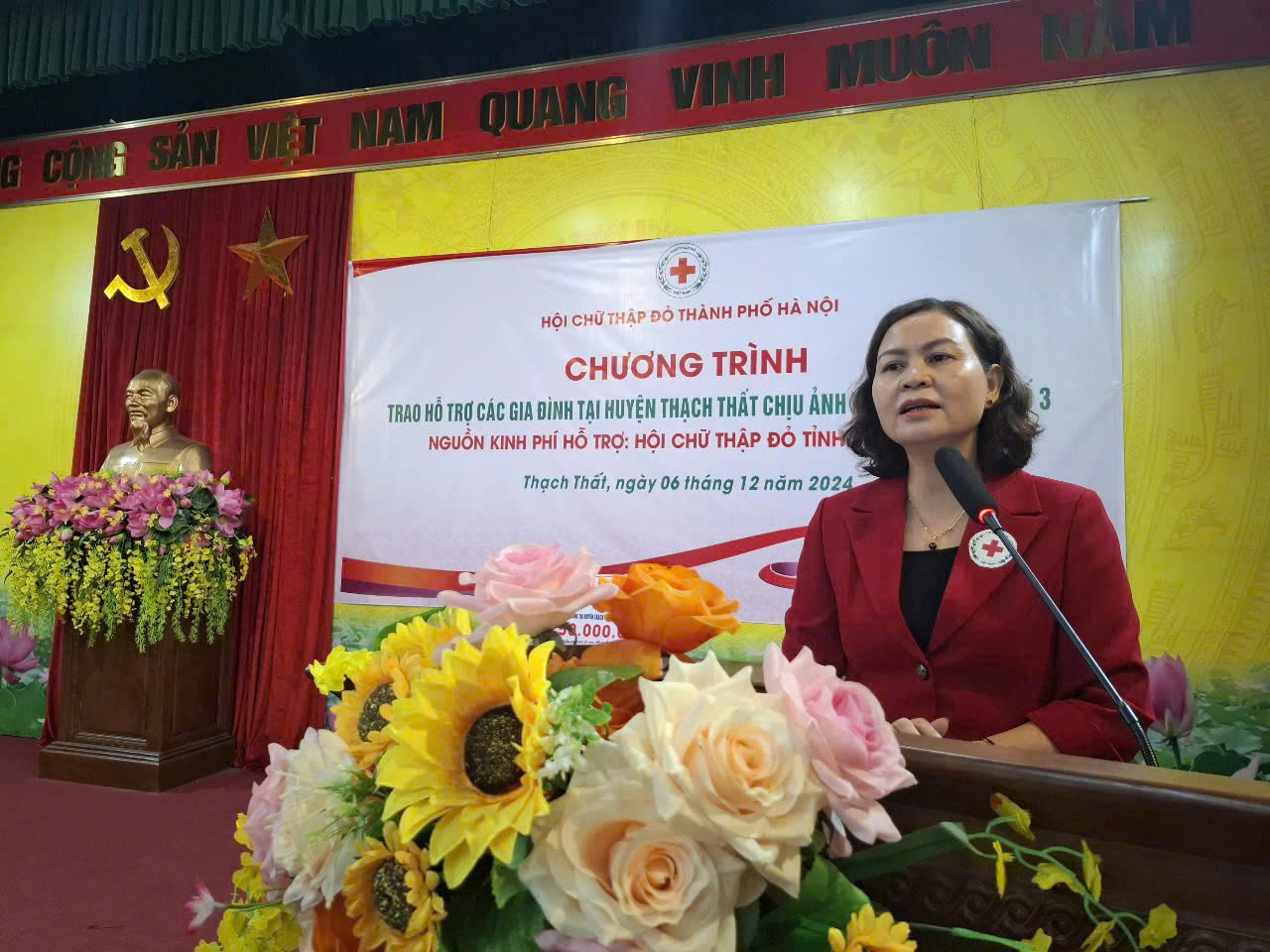 07/12/2024Thực hiện chương trình công tác Hội và phong trào chữ thập đỏ huyện Thạch Thất năm 2024, chiều ngày 6/12/2024, Thường trực Hội chữ thập đỏ huyện tổ chức Hội nghị trao kinh phí hỗ trợ cho các gia đình bị thiệt hại do bão số 3 gây ra.