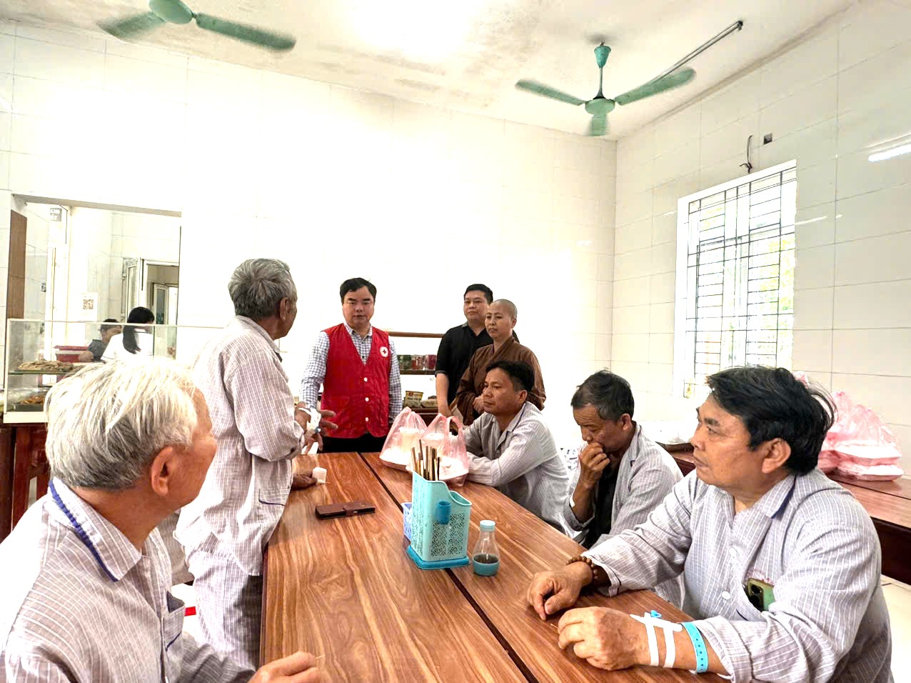 Đồng chí Nguyễn Đình Dũng - Chủ tịch Hội Chữ thập đỏ Huyện, sư thầy Thích Đàm Giới - Trụ trì chùa Hưng Sơn, thôn Phú Thụ, xã Lại Thượng, ông Chu Văn Giáp – Điểm công nghiệp Chàng Sơn xã Thạch Xá, đại diện Bệnh viện Đa khoa Huyện Thạch Thất, dự chương trình.Tại Nhà ăn Bệnh viện đa khoa huyện, các đại biểu đã trao tặng 120 suất cơm nghĩa tình, trị giá 4.200.000 đồng cho những bệnh nhân đang điều trị tại Bệnh viện Đa khoa Huyện Thạch Thất. Hội Chữ thập đỏ Huyện Thạch Thất trao giấy Ghi nhận “Tấm lòng vàng nhân đạo” cho các mạnh thường quân tham gia ủng hộ chương trình.