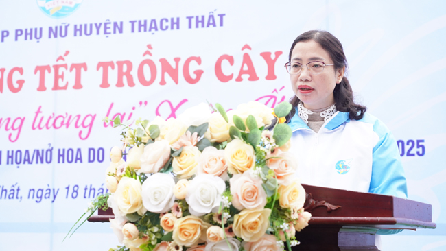 Phát biểu phát động tại buổi Lễ, đồng chí Khuất Thị Khuyên- HUV- Chủ tịch Hội LHPN huyện cho biết: Đây là sự kiện khởi đầu cho đợt thi đua đặc biệt của các cấp Hội Phụ nữ trên địa bàn huyện, chào mừng các ngày lễ lớn trong năm 2025, kỷ niệm 115 năm ngày Quốc tế Phụ nữ 8/3, 1985 năm khởi nghĩa Hai Bà Trưng, 60 năm phong trào Phụ nữ Ba đảm đang; chào mừng kỷ niệm 95 năm thành lập Đảng bộ Tp Hà Nội, 80 năm thành lập Đảng bộ huyện Thạch Thất, 80 năm huyện Thạch Thất giành chính quyền, chào mừng Đại hội Đảng bộ các nhiệm kỳ 2025- 2030.
