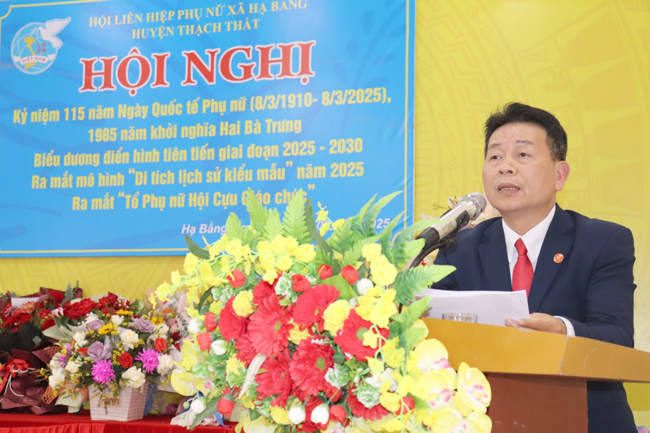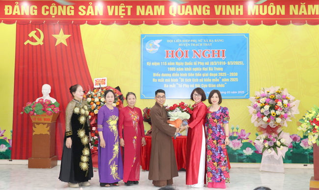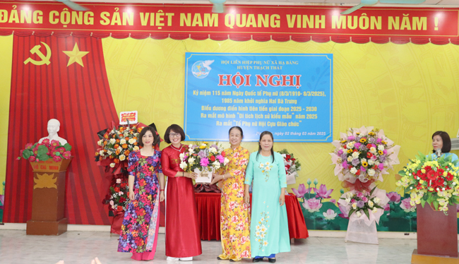 04/03/2025Chiều ngày 2/3, Hội LHPN xã Hạ Bằng tổ chức Hội nghị kỷ niệm 115 năm ngày Quốc tế Phụ nữ (8/3/1910- 8/3/2025); 1985 năm cuộc khởi nghĩa Hai Bà Trưng, biểu dương điển hình tiên tiến giai đoạn 2025 – 2030; ra mắt mô hình “Di tích lịch sử kiểu mẫu” và “Tổ Phụ nữ Hội cựu giáo chức”. Các đồng chí lãnh đạo Đảng ủy- HĐND- UBND- UBMTTQ; Trưởng các ngành đoàn thể chính trị xã hội xã dự, tặng hoa chúc mừng.