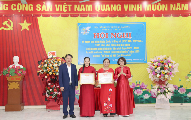 Nhân dịp này, UBND xã Hạ Bằng đã trao tặng giấy khen cho 02 tập thể, 10 cá nhân có thành tích xuất sắc trong phong trào thi đua yêu nước giai đoạn 2025- 2030; ra mắt mô hình “Di tích lịch sử kiểu mẫu” với 17 thành viên; ra mắt “Tổ Phụ nữ Hội cựu giáo chức” với 36 thành viên; đồng thời tặng quà cho các đồng chí nguyên Chủ tịch Hội LHPN xã qua các thời kỳ và trao lợn nhựa tiết kiệm cho các Chi tổ hội Phụ nữ trên địa bàn xã./.