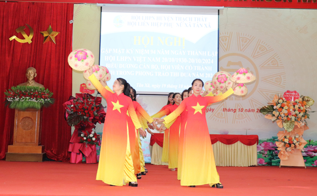 Tại chương trình giao lưu văn nghệ, các cán bộ, hội viên phụ nữ xã Tân Xã đã mang đến nhiều tiết mục múa, hát, nhảy dân vũ với chủ đề ca ngợi tình yêu quê hương đất nước, ca ngợi hình ảnh phụ nữ Việt Nam; ấn tượng nhất là tiết mục trình diễn áo dài, bởi đã từ lâu, áo dài là một biểu tượng văn hóa gắn liền với hình tượng phụ nữ Việt Nam. Qua nhiều thời kỳ phát triển, tà áo dài không ngừng biến đổi nhưng vẫn đảm bảo tính truyền thống, góp phần tôn lên vẻ đẹp thanh lịch, dịu dàng của những người phụ nữ Việt.