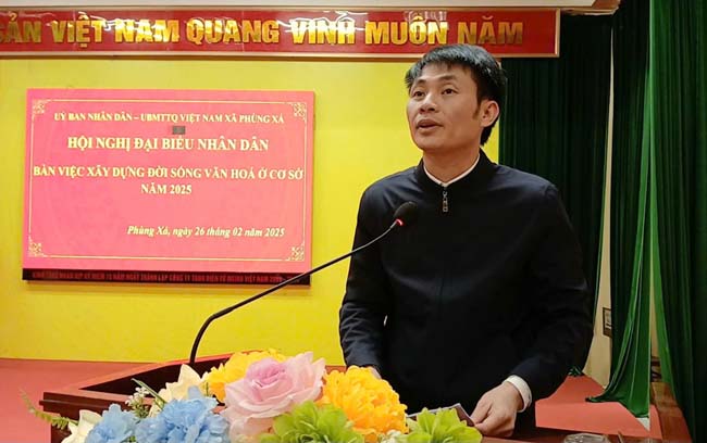 Báo cáo tại Hội nghị, đồng chí Nguyễn Trần Vượng- Phó Bí thư Đảng ủy, Chủ tịch UBND xã Phùng Xá cho biết, trong năm 2024 vừa qua, cấp ủy, chính quyền, MTTQ, các ban, ngành, đoàn thể chính trị- xã hội từ xã đến thôn dân cư tiếp tục thực hiện có hiệu quả phong trào “Toàn dân đoàn kết xây dựng đời sống văn hóa ở khu dân cư” gắn với cuộc vận động toàn dân chung tay xây dựng nông thôn mới nâng cao. Quá trình triển khai thực hiện đã vận dụng linh hoạt, chủ động, với nhiều nội dung cụ thể, thiết thực, phù hợp với thực tiễn địa phương và các thôn, trong đó, nhiều nội dung đạt kết quả cao như: Toàn xã có 91,4% số hộ đạt gia đình văn hóa; 4/4 thôn đạt thôn văn hóa; việc cưới, việc tang, lễ hội, mừng thọ được tổ chức chu đáo, trang trọng, tiết kiệm theo nếp sống văn hóa mới. Các hoạt động văn hoá, văn nghệ, thể dục thể thao ngày càng phát triển. Công tác bảo vệ môi trường thường xuyên được quan tâm và thực hiện có hiệu quả, góp phần đưa xã Phùng Xá hoàn thành xây dựng xã đạt chuẩn nông thôn mới nâng cao năm 2024.