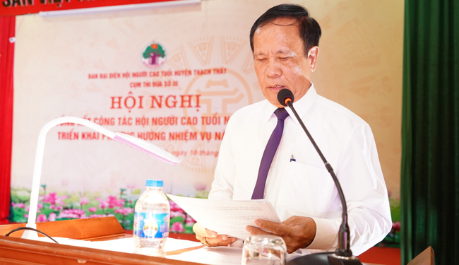Phát biểu tại hội nghị, đồng chí Nguyễn Văn Thọ- Phó Trưởng ban Thường trực Ban đại diện Hội NCT huyện đã biểu dương những kết quả mà Hội NCT trong Cụm thi đua số 3 huyện đạt được trong năm 2024; trong thời gian tới, Cụm thi đua số 3 cần tiếp tục đẩy mạnh công tác tuyên truyền, thực hiện tốt các đường lối, chủ trương của Đảng, chính sách, pháp luật của Nhà nước. Tổ chức thực hiện có hiệu quả các phong trào thi đua của tổ chức Hội. Nắm bắt kịp thời tâm tư, nguyện vọng của hội viên; đẩy mạnh công tác xã hội hoá, đa dạng nội dung, phương thức, loại hình chăm sóc NCT. Duy trì và tổ chức tốt các hoạt động chúc thọ, mừng thọ NCT nhân dịp đầu Xuân; thực hiện kịp thời, đầy đủ các chế độ Bảo trợ xã hội, cấp thẻ BHYT, quan tâm đến đối tượng chính sách, người có công, hoàn cảnh khó khăn,...