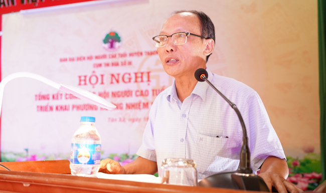 Đồng chí Nguyễn Văn Thọ- Phó Trưởng ban Thường trực Ban đại diện Hội NCT huyện phát biểu tại Hội nghị