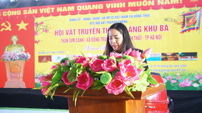 Đ/c Nguyễn Thị Minh Phương- Phó Chủ tịch UBND xã Đồng Trúc phát biểu khai mạc Hội vật