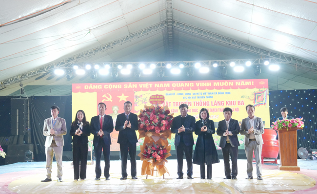 Đồng chí Nguyễn Đăng Quân- Ủy viên BTV- Trưởng ban Tuyên giáo Huyện ủy- Giám đốc Trung tâm Chính trị huyện; đồng chí Đặng Minh Tân- Ủy viên BTV Huyện ủy- Chủ tịch UB MTTQ huyện; đồng chí Nguyễn Thị Bích Ngọc- Ủy viên BTV Huyện ủy- Phó Chủ tịch UBND huyện; đồng chí Đặng Văn Võ- HUV- Giám đốc Trung tâm VH- TT & TT huyện; lãnh đạo Phòng Tài nguyên- Môi trường; Phòng Văn hóa- Thông tin huyện dự, tặng hoa chúc mừng.