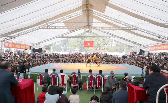 Trong ba ngày, các trận đấu vật diễn ra quyết liệt, tạo nên không khí hào hứng, sôi nổi trong tiếng hò reo cổ vũ của người xem hòa cùng tiếng trống hội hối thúc giòn giã của Ban tổ chức.