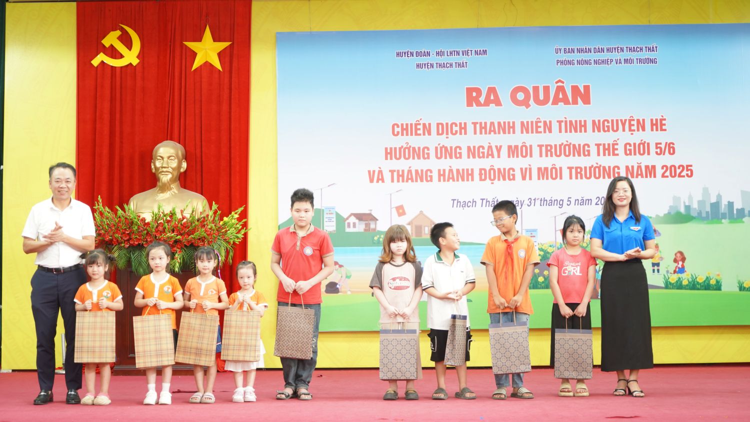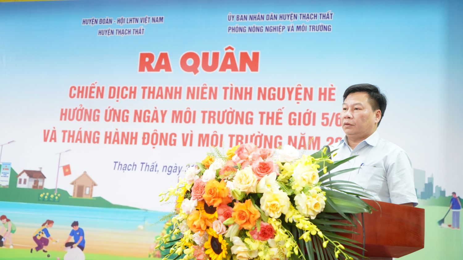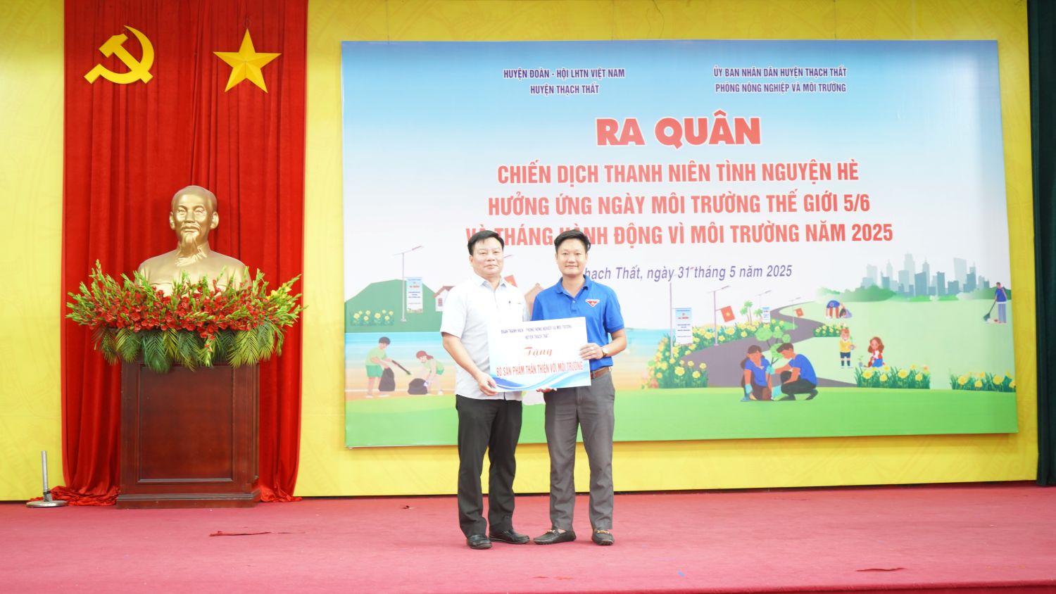 Sáng ngày 31/5, tại hội trường UBND xã Lam Sơn, Huyện đoàn Thạch Thất phối hợp với Phòng Nông nghiệp và Môi trường huyện tổ chức Chương trình ra quân chiến dịch Thanh niên tình nguyện hè, hưởng ứng ngày Môi trường thế giới 5/6 và Tháng hành động vì môi trường năm 2025. Đồng chí Phạm Minh Phúc – UVBTV, Trưởng Ban đoàn kết thanh niên và địa bàn, Phó Chủ tịch thường trực Hội LHTNVN Thành phố Hà Nội; đ/c Phùng Khắc Sơn – UVBTV Huyện uỷ, Phó Chủ tịch UBND huyện; đ/c Trần Đức Thanh – Trưởng Phòng Nông nghiệp và Môi trường huyện; đ/c Phùng Thị Huyền – Bí thư Huyện đoàn; các đồng chí lãnh đạo Đảng uỷ - HĐND – UBND xã Lam Sơn dự, chỉ đạo chương trình.