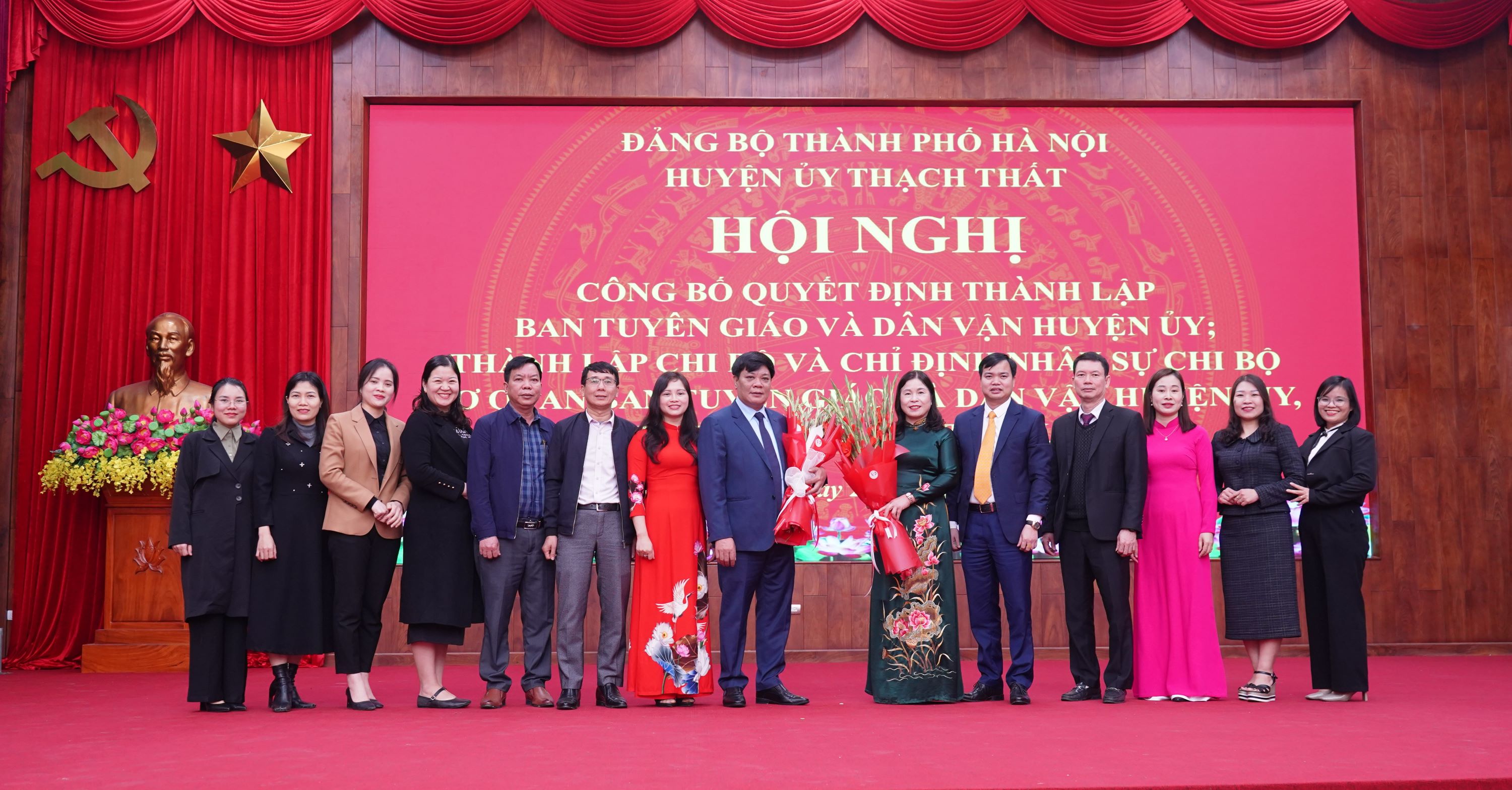 Tại hội nghị, Ban Tổ chức Huyện ủy Thạch Thất đã công bố Quyết định thành lập Ban Tuyên giáo và Dân vận Huyện ủy trên cơ sở hợp nhất Ban Tuyên giáo Huyện ủy và Ban Dân vận Huyện ủy Thạch Thất; công bố quyết định bổ nhiệm đồng chí Nguyễn Đăng Quân, Ủy viên Ban Thường vụ Huyện ủy, Trưởng Ban Tuyên giáo Huyện ủy, Giám đốc Trung tâm Chính trị huyện giữ chức Trưởng Ban Tuyên giáo và Dân vận Huyện ủy, Giám đốc Trung tâm Chính trị huyện; đồng chí Nguyễn Đình Tùng, Huyện ủy viên, Phó Trưởng BanThường trực Ban Dân vận Huyện ủy giữ chức Phó Trưởng Ban Tuyên giáo và Dân vận Huyện ủy; đồng chí Cấn Thị Thu Thủy, Phó Trưởng Ban Dân vận Huyện ủy giữ chức Phó Trưởng Ban Tuyên giáo và Dân vận Huyện ủy; đồng chí Nguyễn Trường Giang, Huyện ủy viên, Phó Trưởng Ban Tuyên giáo Huyện ủy giữ chức Phó Trưởng Ban Tuyên giáo và Dân vận Huyện ủy; đồng chí Đặng Thị Việt Thu, Phó Trưởng Ban Tuyên giáo Huyện ủy giữ chức Phó Trưởng Ban Tuyên giáo và Dân vận Huyện ủy. Ban Tuyên giáo và Dân vận Huyện ủy thực hiện chức năng, nhiệm vụ, tổ chức bộ máy, mối quan hệ công tác và xây dựng quy chế làm việc theo quy định, hướng dẫn của Trung ương, Thành uỷ, chính thức đi vào hoạt động từ ngày 01/3/2025.