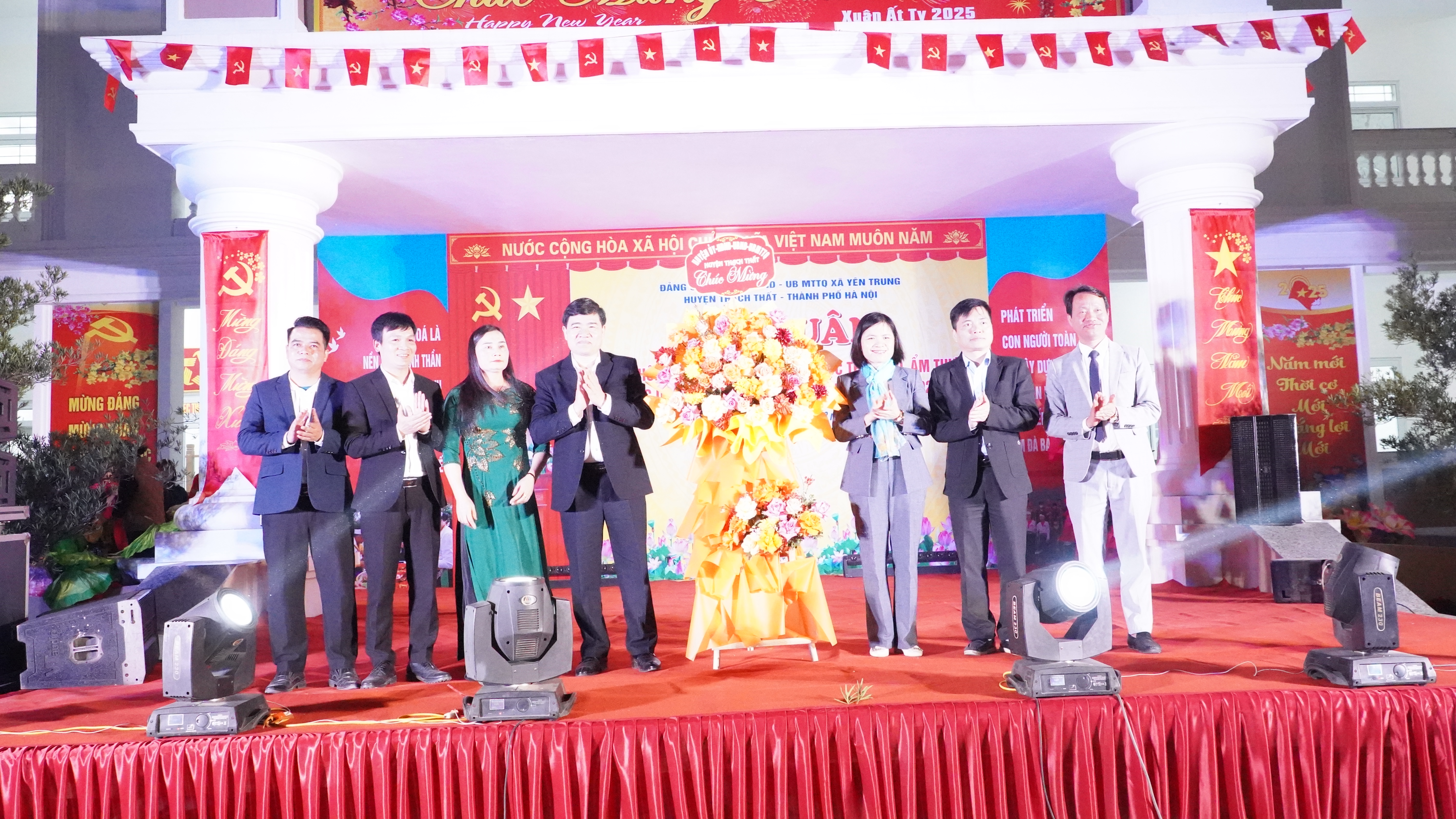 Đồng chí Nguyễn Thị Bích Ngọc – UVBTV - Phó chủ tịch UBND Huyện Thạch Thất, đồng chí Phạm Quang Thái – HUV - Trưởng Phòng Văn hoá thông tin huyện, đồng chí Đặng Văn Võ – HUV- Giám đốc Trung tâm Văn hoá - Thông tin và Thể thao huyện, lãnh đạo Đảng uỷ - HĐND – UBND - UB MTTQ xã Yên Trung, xã Tiến Xuân dự, tặng hoa chúc mừng.