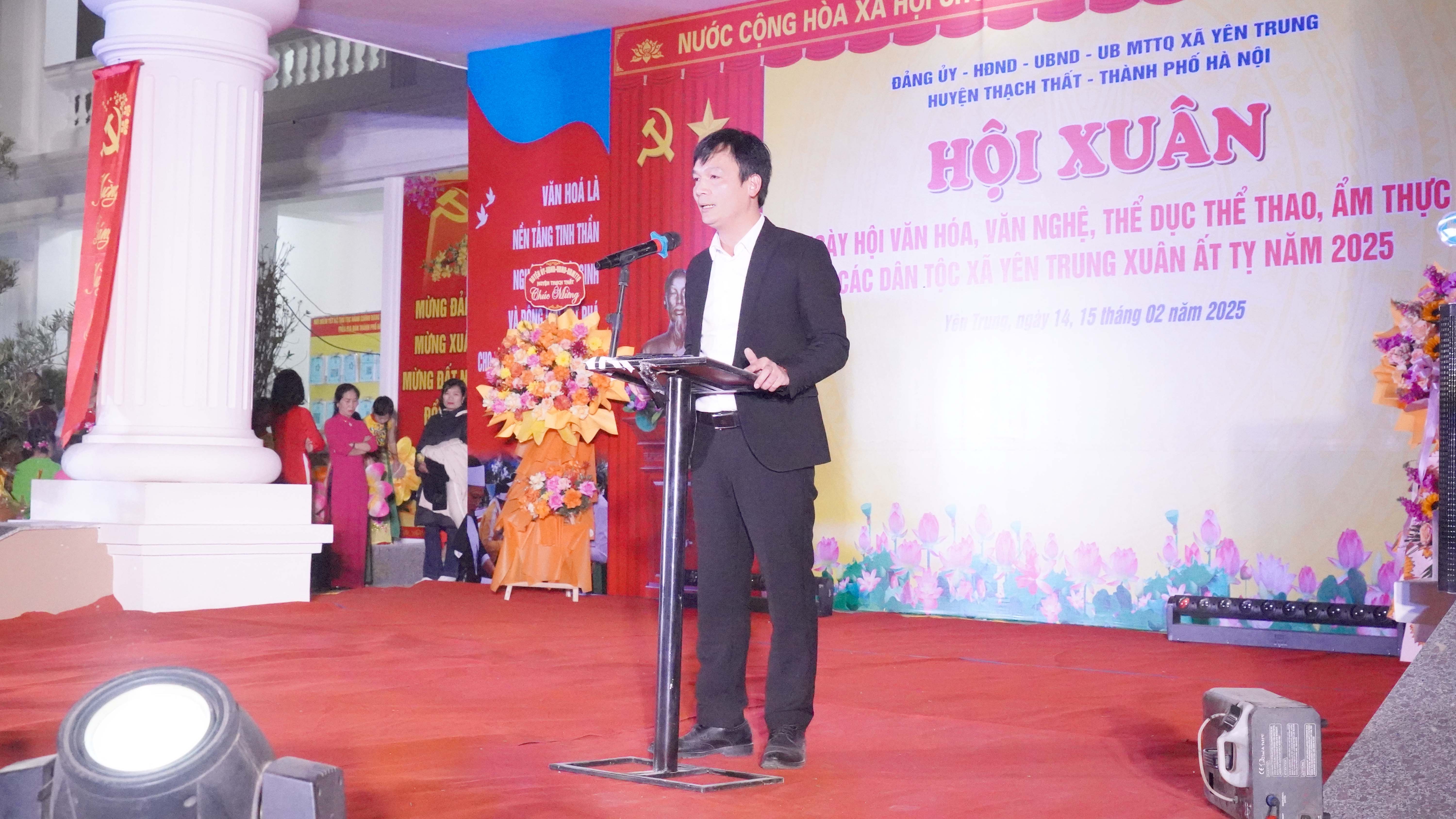 Phát biểu khai mạc, đồng chí Kiều Quang Huấn - Phó chủ tịch phụ trách UBND xã Yên Trung nhấn mạnh: Trong những năm qua, được sự quan tâm lãnh đạo, chỉ đạo của Huyện ủy, HĐND, UBND huyện, sự giúp đỡ của các phòng, ban, ngành, đoàn thể huyện; sự lãnh đạo chỉ đạo trực tiếp của Đảng ủy, HĐND, UBND xã các nhiệm vụ chính trị, phát triển kinh tế, văn hóa hóa xã hội, an ninh quân sự địa phương đã đạt và vượt chỉ tiêu đề ra. Thành quả đó không chỉ là của cấp ủy Đảng, chính quyền mà còn là sự nỗ lực, đoàn kết đồng lòng của nhân dân xã Yên Trung. Năm 2025 đang mở ra những cơ hội mới, thách thức mới, là năm diễn ra Đại hội Đảng các cấp nhiệm kỳ 2025-2030 tiến tới Đại hội đại biểu toàn quốc lần thứ XIV(14) của Đảng, là năm xã Yên Trung được thành phố và huyện lựa chọn để xây dựng về đích nông thôn mới nâng cao. Hy vọng, mỗi cán bộ, đảng viên và nhân dân trong xã tiếp tục nỗ lực phấn đấu, đoàn kết một lòng để thực hiện tốt các nhiệm vụ phát triển kinh tế - xã hội, nâng cao đời sống vật chất, tinh thần của nhân dân, bảo vệ và phát huy bản sắc văn hóa dân tộc Mường, giữ vững an ninh trật tự, xây dựng xã Yên Trung ngày càng phát triển.