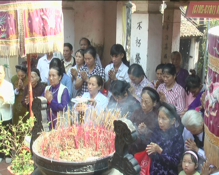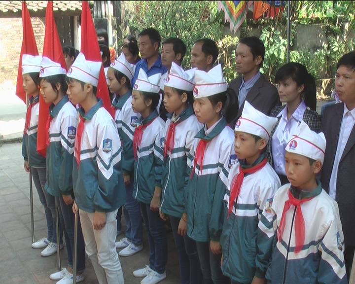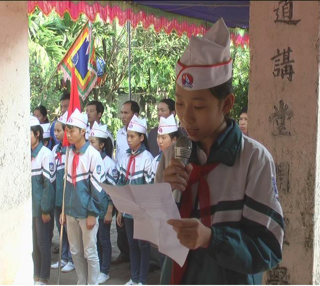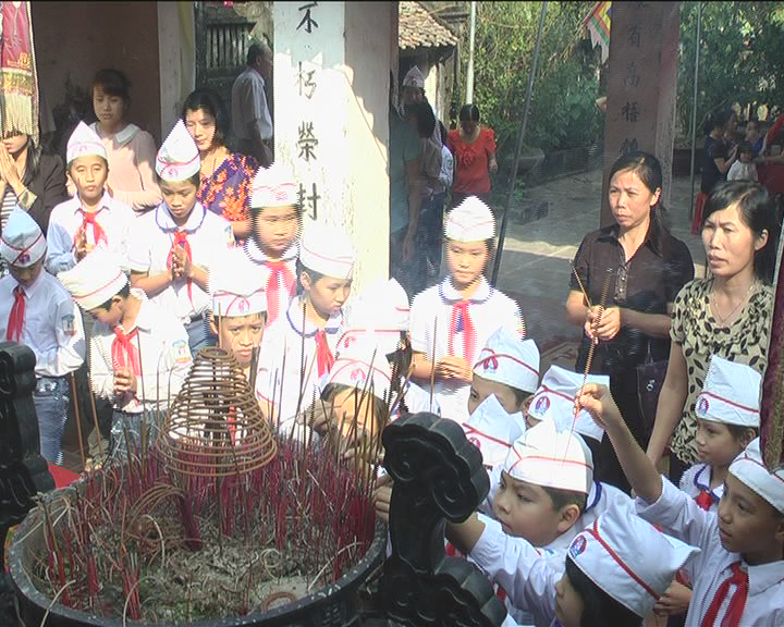 Các em học sinh đến trên địa bàn huyện Thạch Thất về thắp hương báo thành tích học tập tại dền thờ cụ Trạng