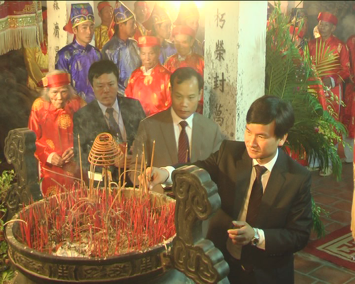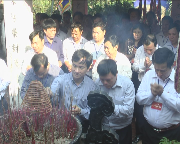 Các đồng chí lãnh đạo Huyện ủy - HĐND- UBND huyện dâng hương tại đền thờ cụ Trạng