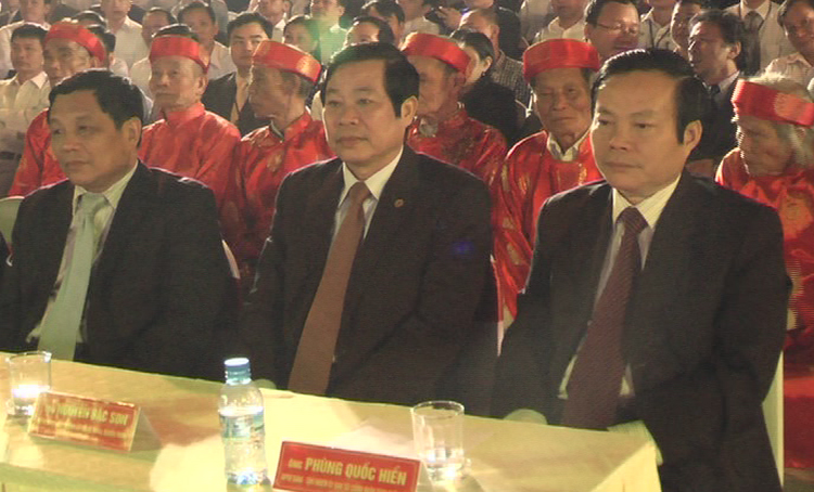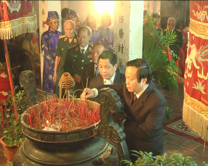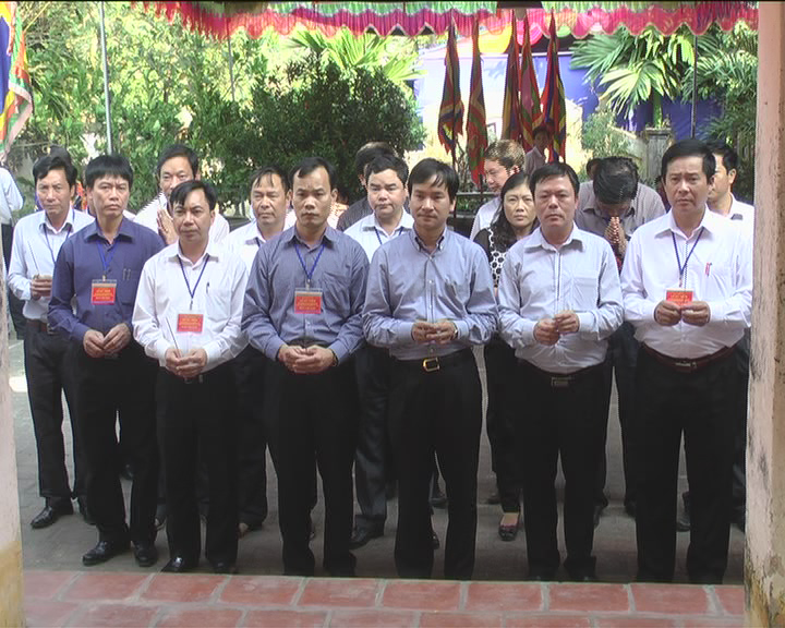 Các đồng chí lãnh đạo huyện ủy- HĐND- UBND huyện Thạch Thất dâng hương tại đền thờ cụ trạng