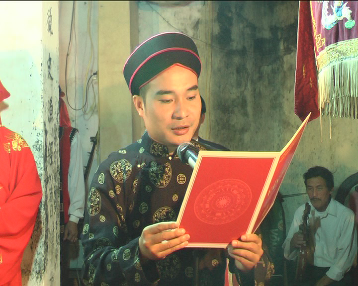 Nghệ sĩ Trần Việt Thắng- Nhà hát chèo Hà Nội đọc văn tế tại đền thờ cụ Trạng