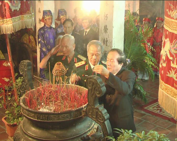Các đồng chí lãnh đạo TW- Thành ủy Hà Nội dâng hương tại đền thờ cụ Trạng