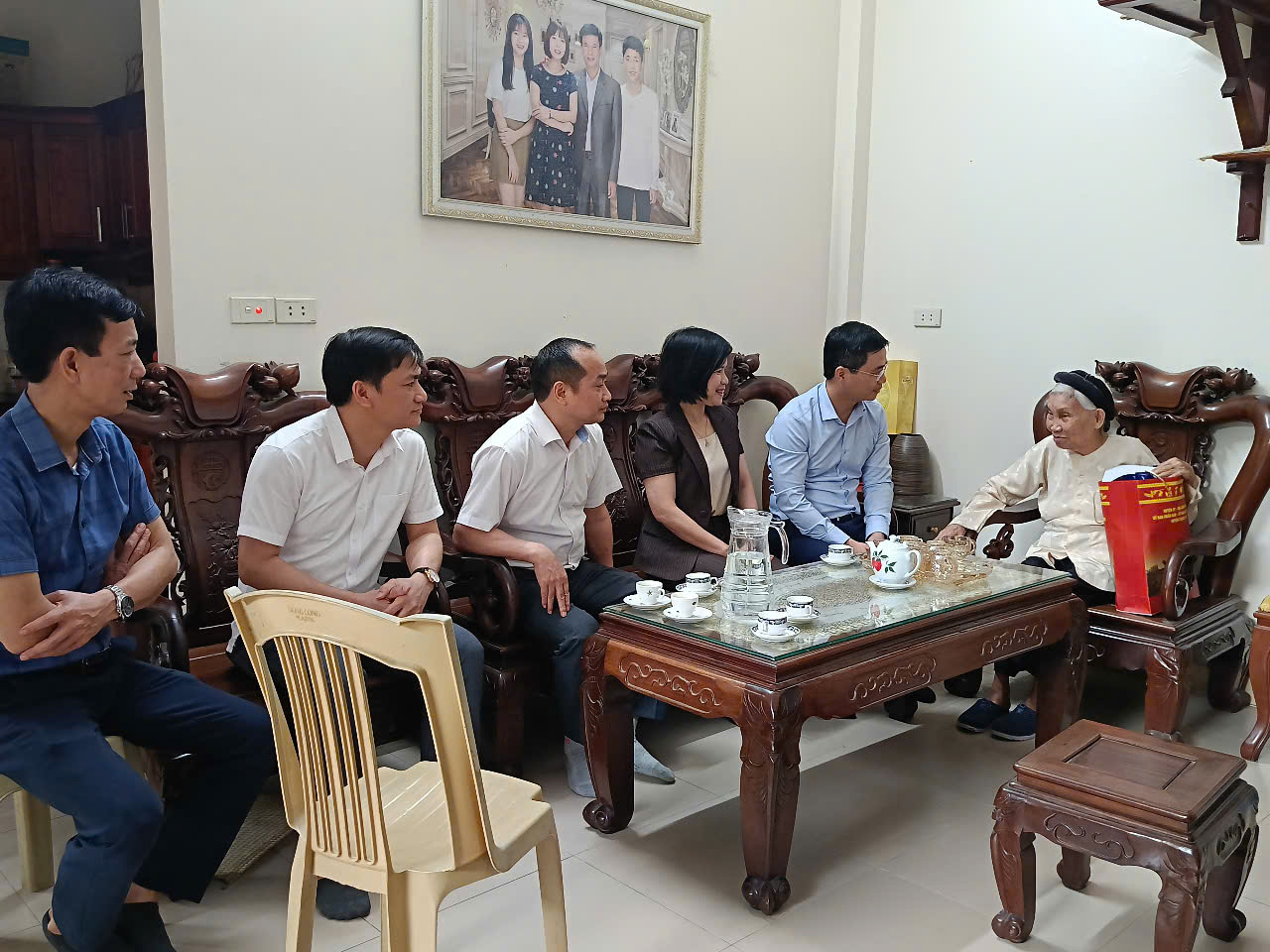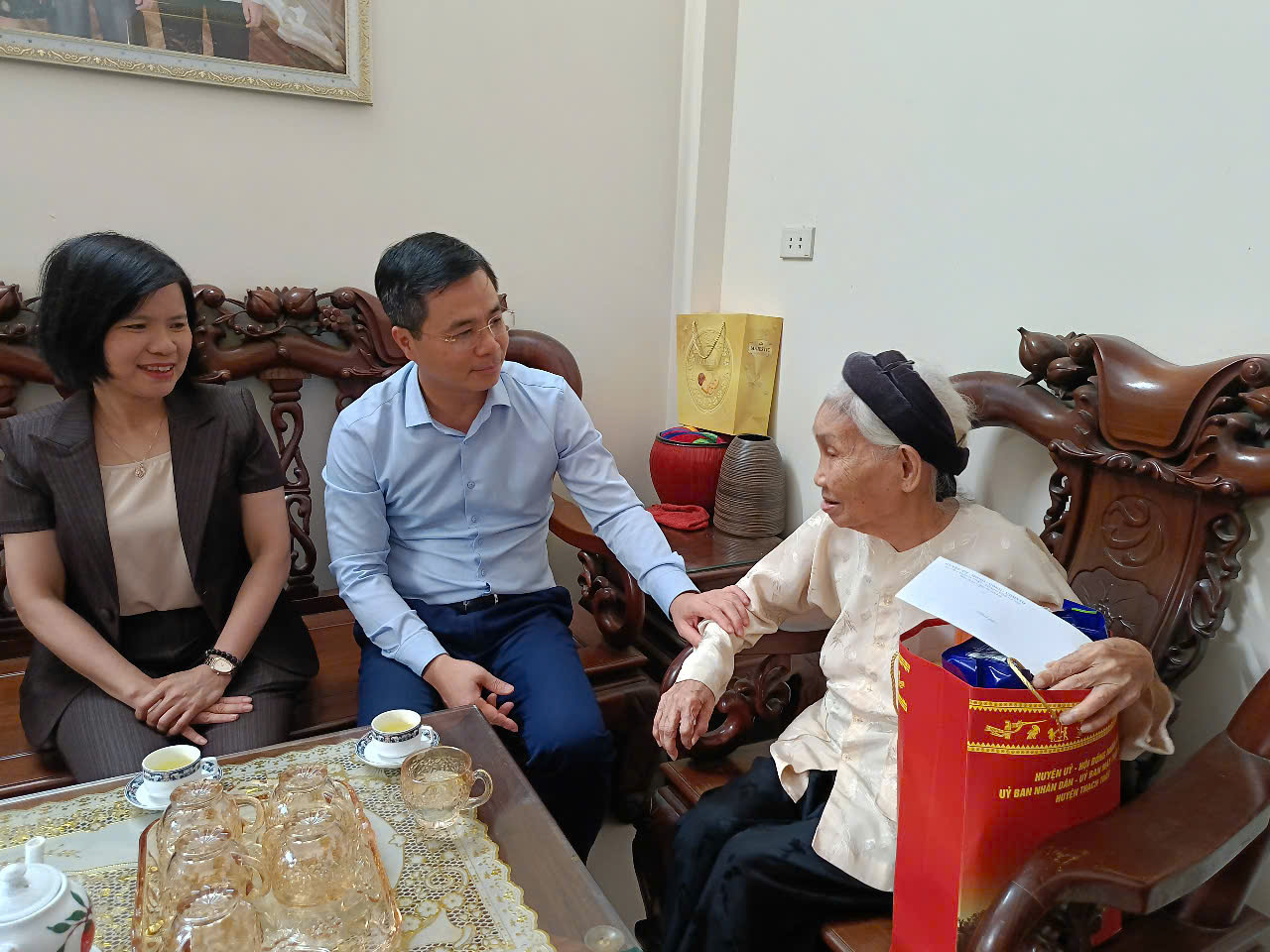 Các đồng chí lãnh đạo huyện Thạch Thất tặng quà Mẹ VNAH Nguyễn Thị Tàu