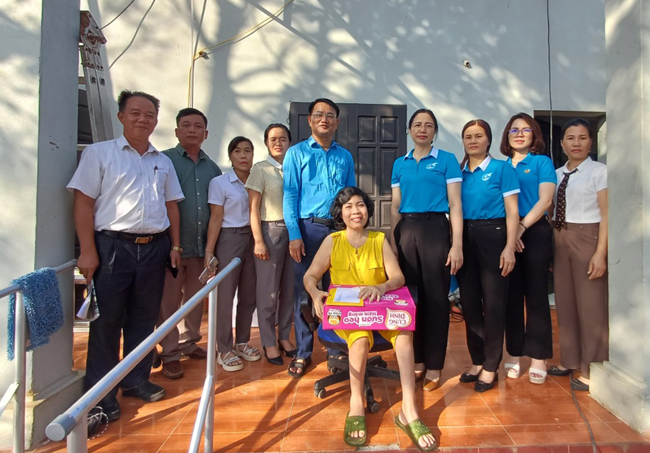 Đ/c Khuất Thị Khuyên- HUV- Chủ tịch Hội LHPN huyện tặng quà tại xã Tiến Xuân