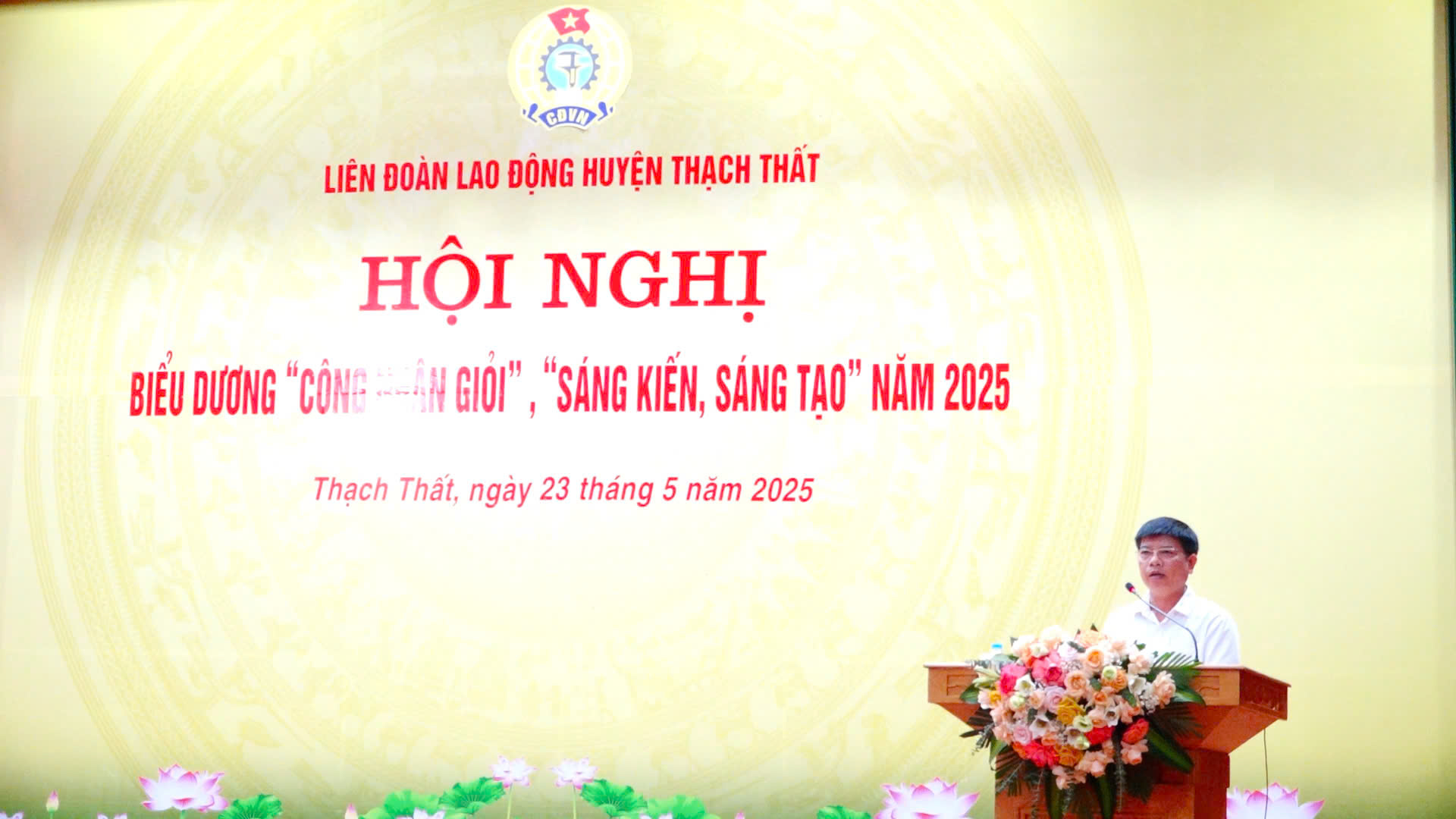 24/05/2025Sáng ngày 23/5/2025, tại Hội trường Trung tâm Văn hóa - Thông tin và Thể thao huyện Thạch Thất, Liên đoàn Lao động huyện tổ chức Hội nghị biểu dương “Công nhân giỏi”, “Sáng kiến, sáng tạo” năm 2025. Chương trình nằm trong chuỗi hoạt động hưởng ứng Tháng Công nhân và chào mừng kỷ niệm 135 năm Ngày sinh Chủ tịch Hồ Chí Minh.